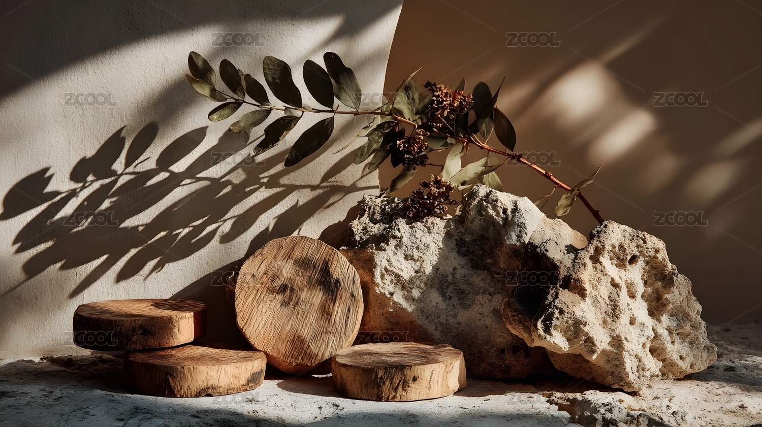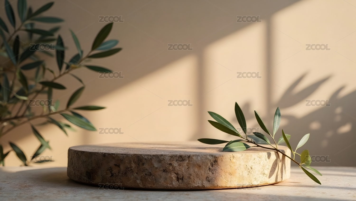石质,台面,绿叶,自然,纹理,装饰,场景,清新,质朴,植物