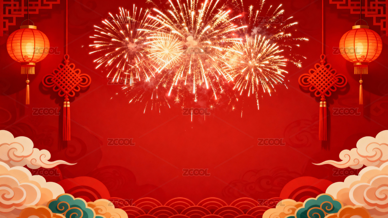 新春,喜庆,舞台,烟花,装饰,红色,灯笼,中国结,祥云,立柱