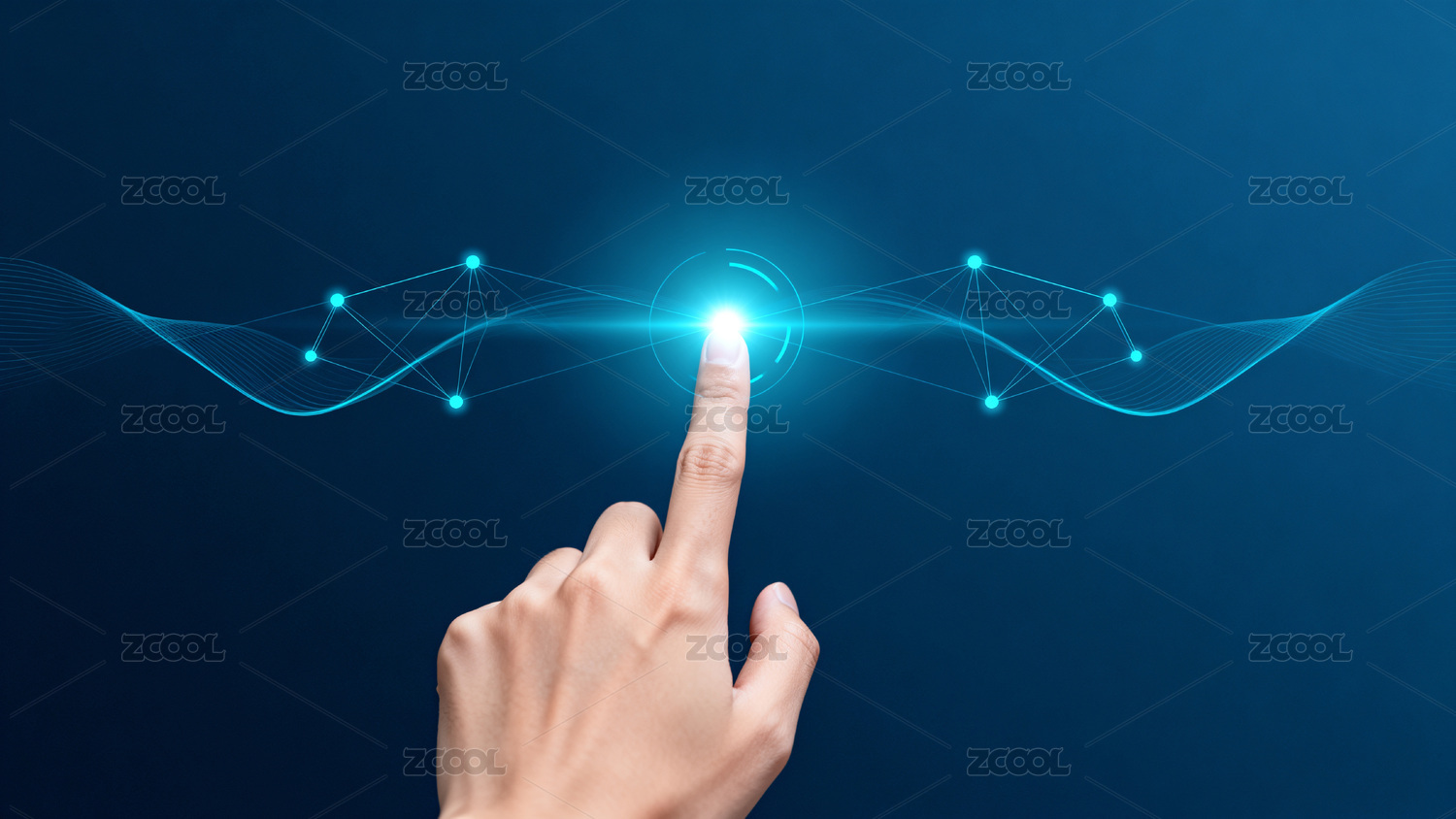 手指触碰蓝色光波科技感画面