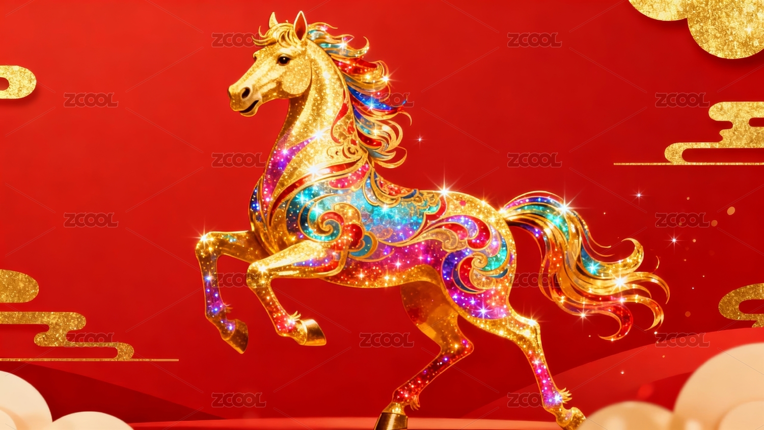 主视觉,商业,壁纸,装饰,传统,文化,马年,骏马,金色,中国风
