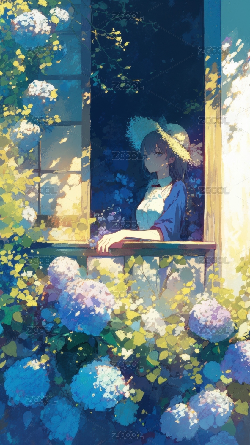 窗边少女与绣球花