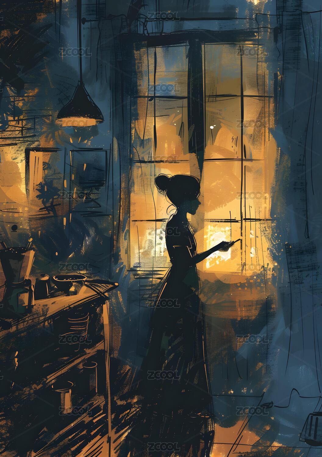 房间窗边站着的女人剪影