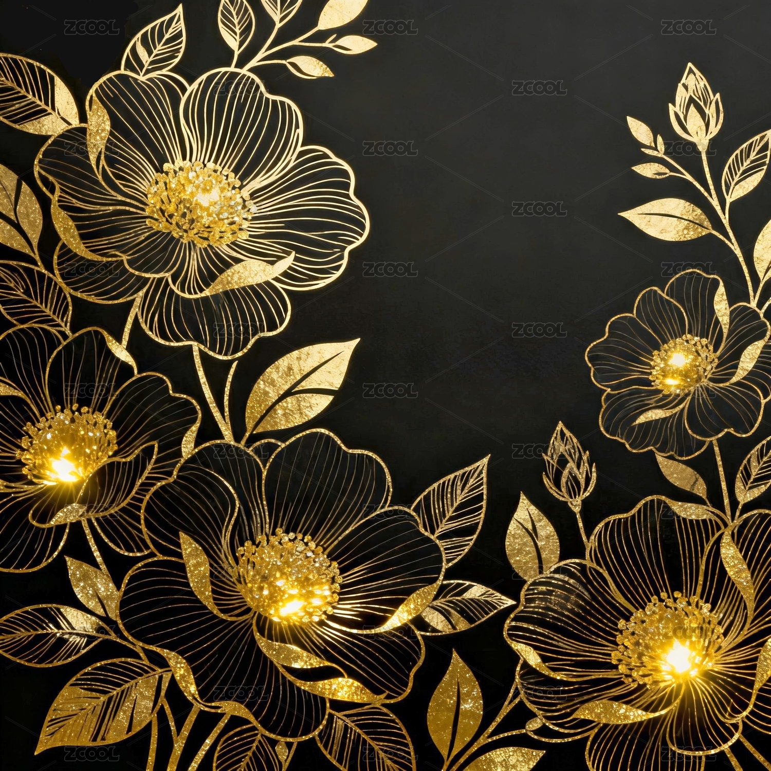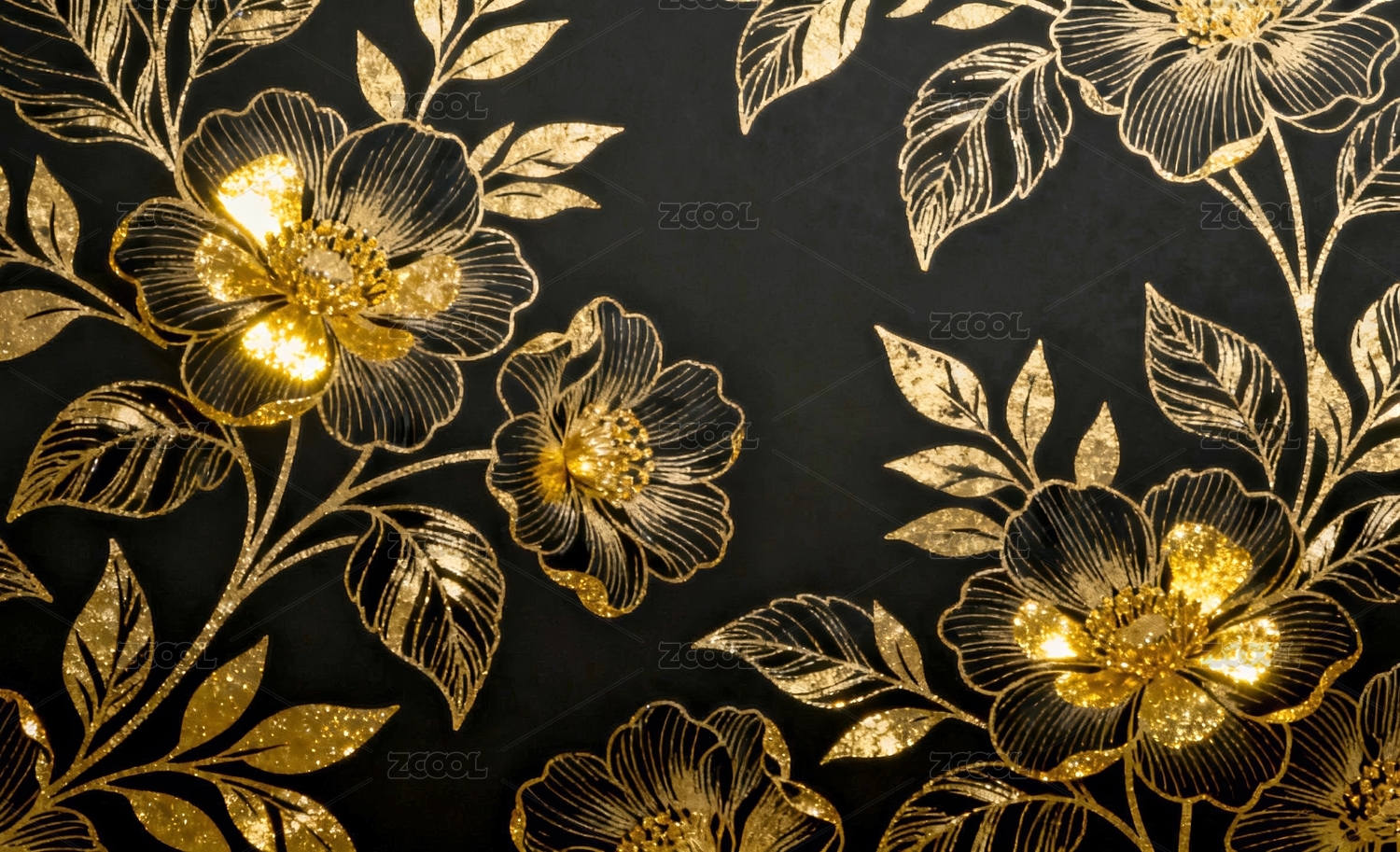 金色花卉华丽装饰场景