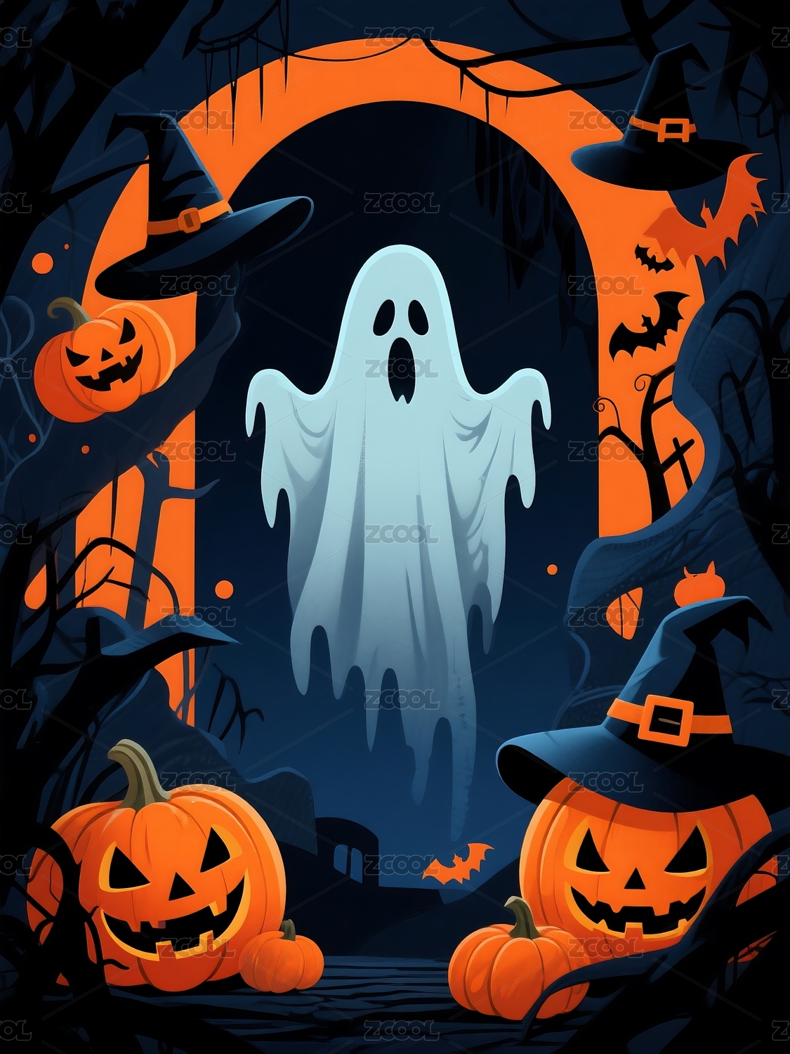 南瓜幽灵万圣节装饰场景