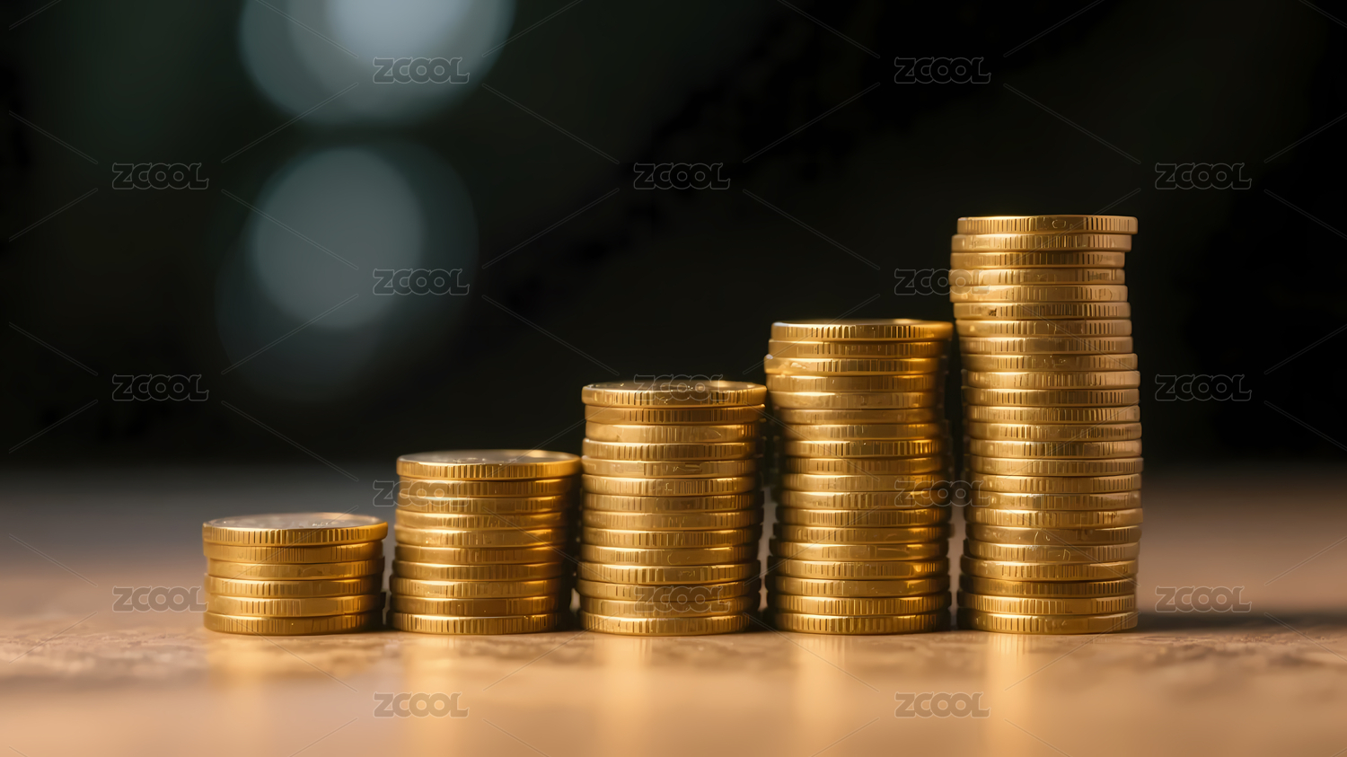 阶梯金币堆柔和光斑