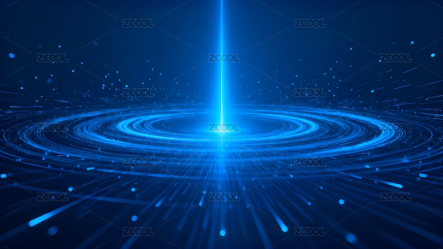 蓝色光束与环形图案的抽象视觉效果