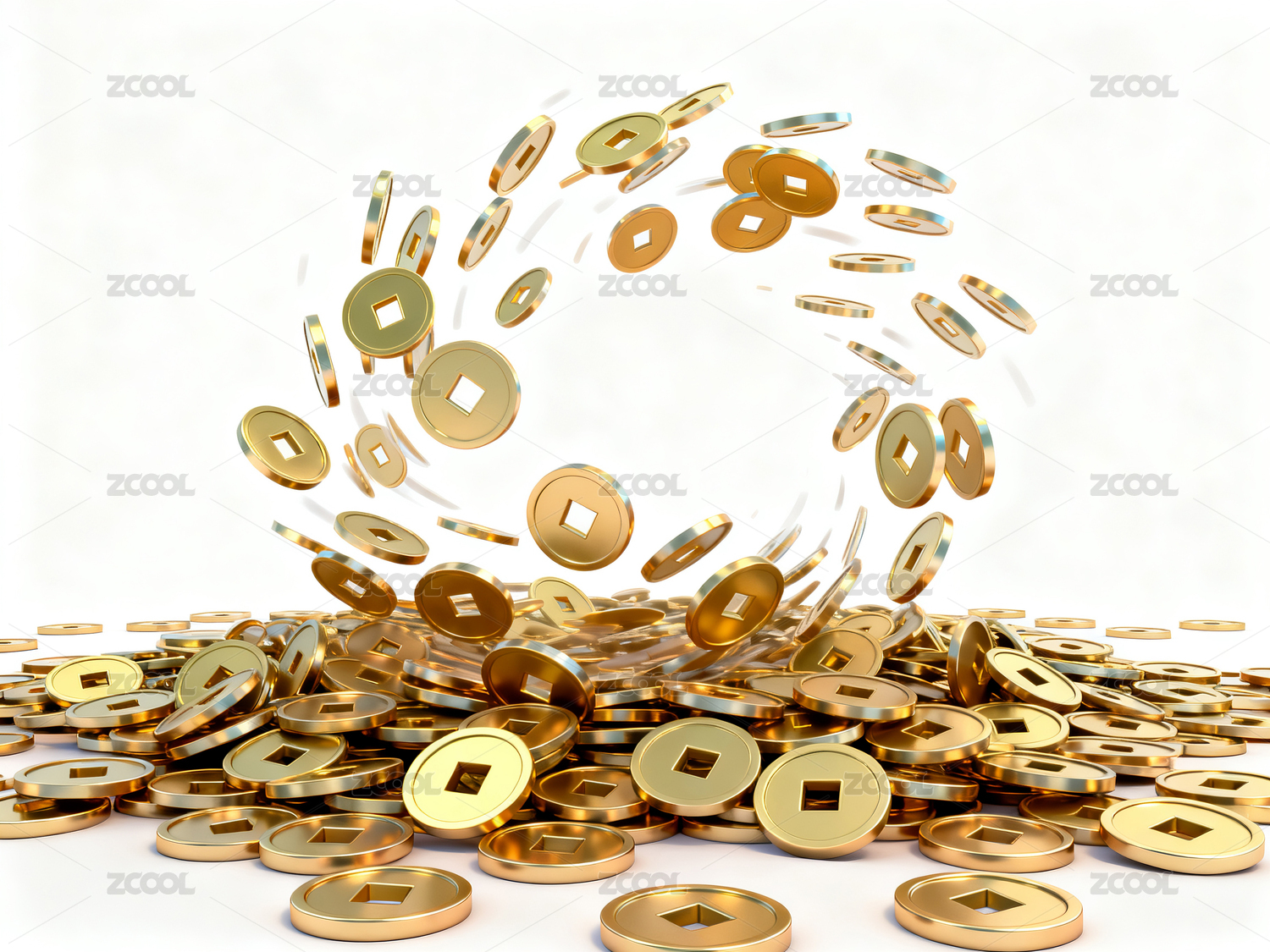 金币,虚拟货币,古钱币,方孔钱,财富,黄金,资金,来源,旋转,无人
