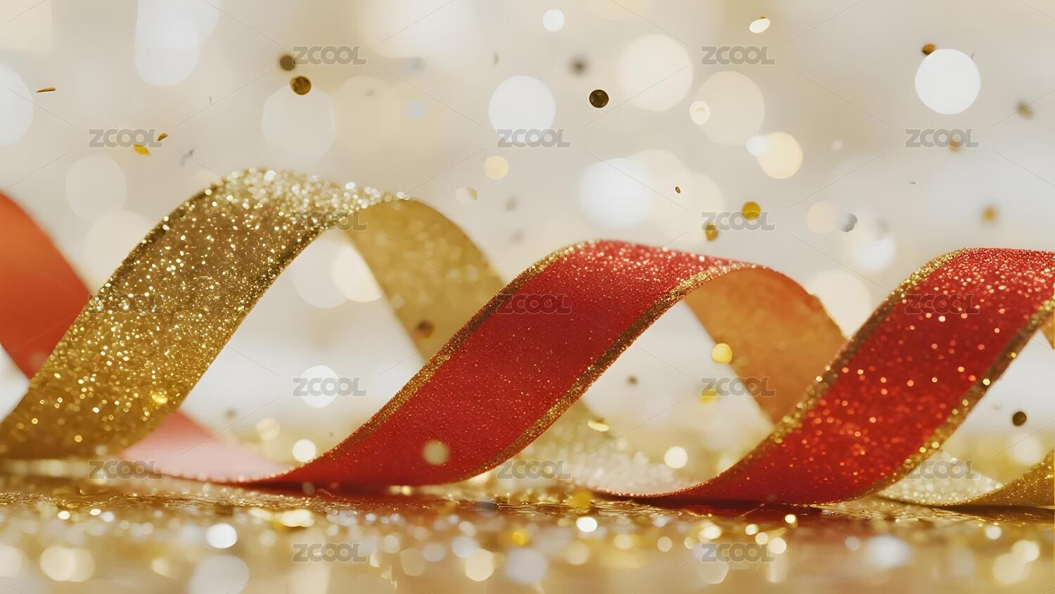 金色闪光丝带节日氛围