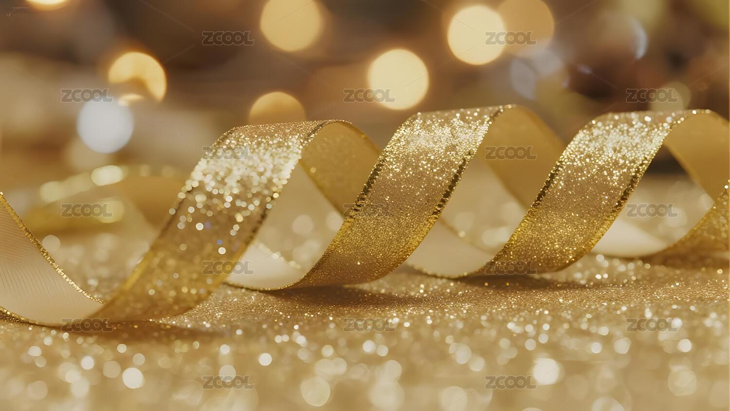 金色闪亮丝带节日氛围