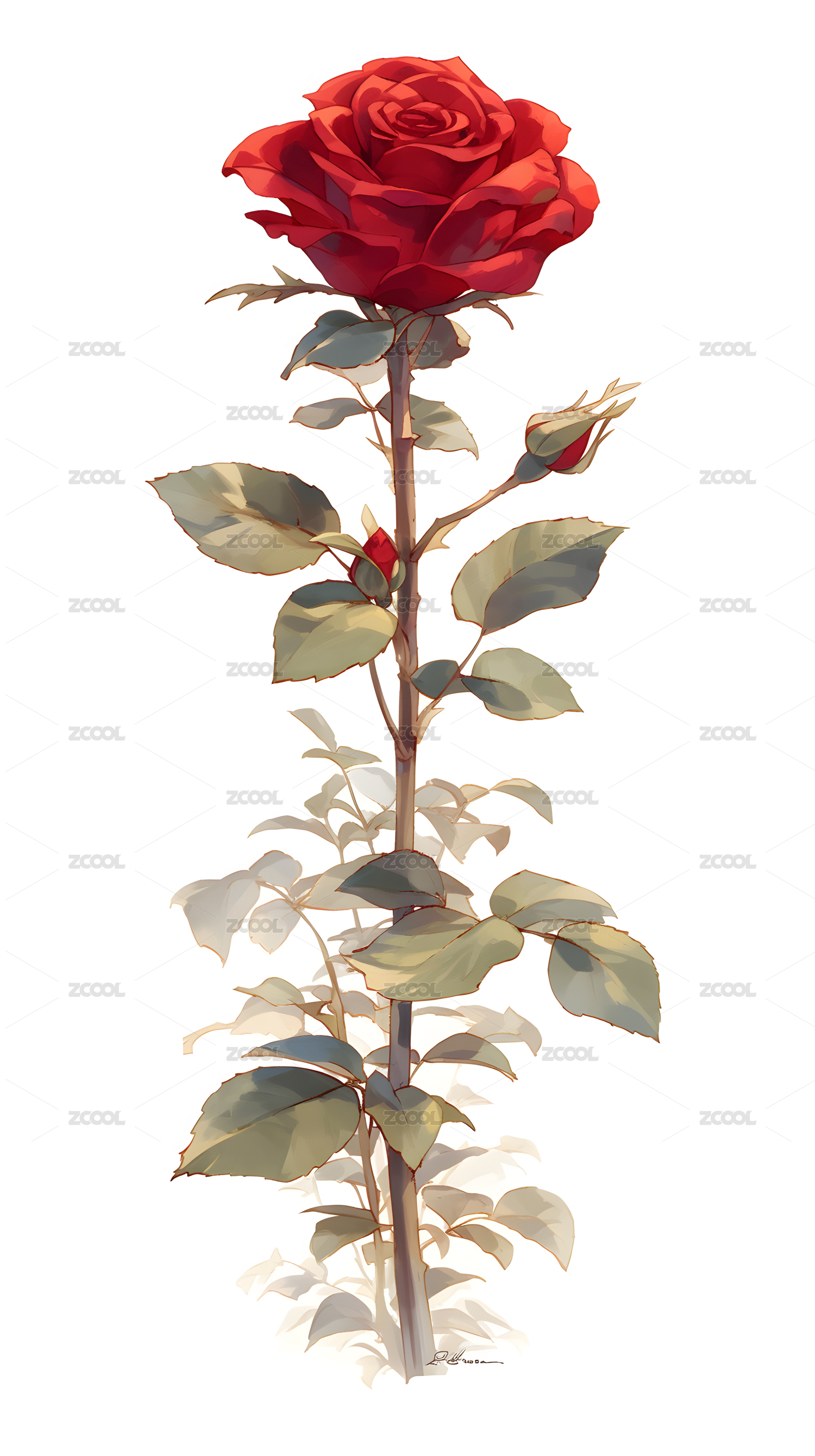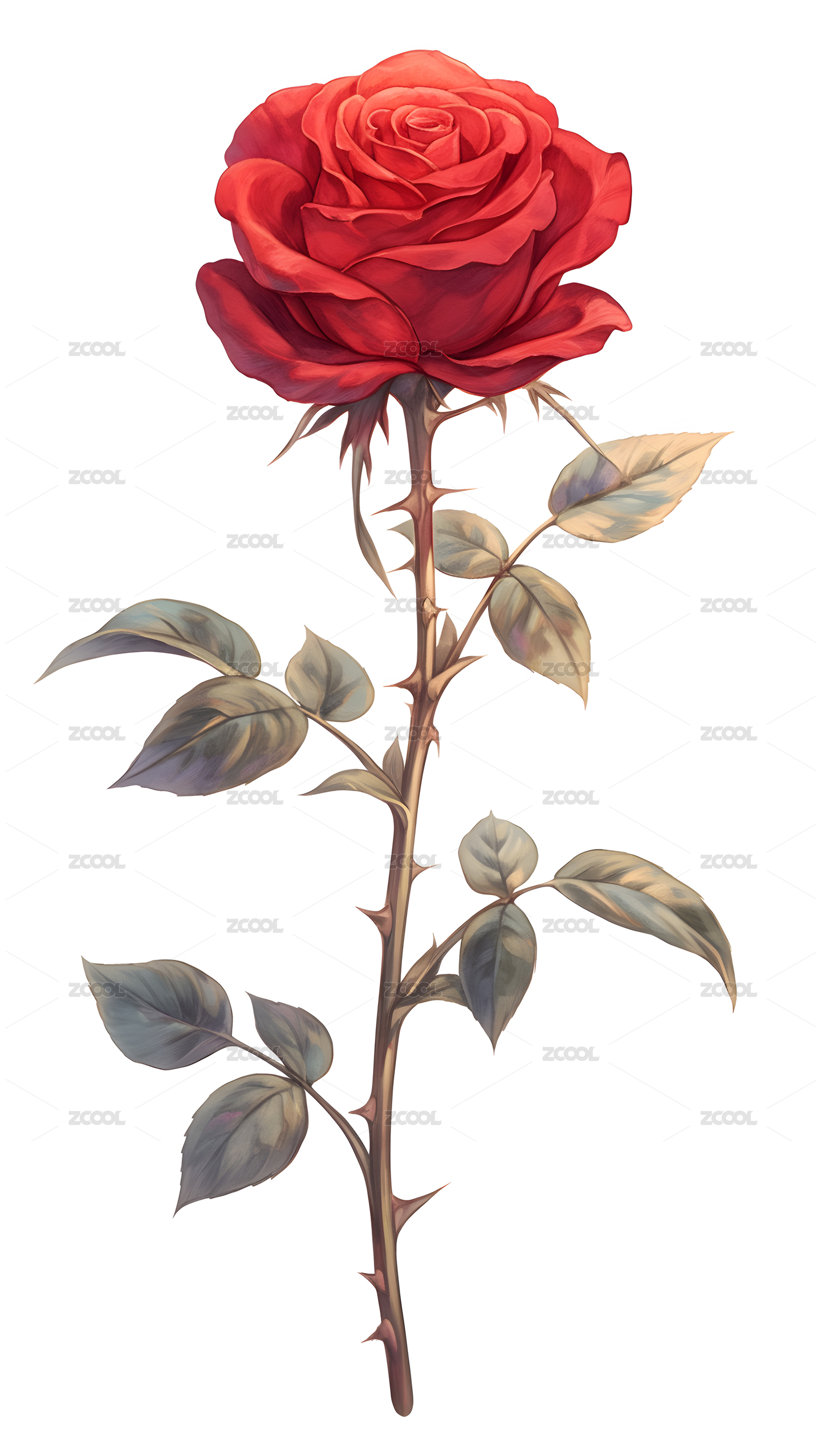 单枝红玫瑰高清插画