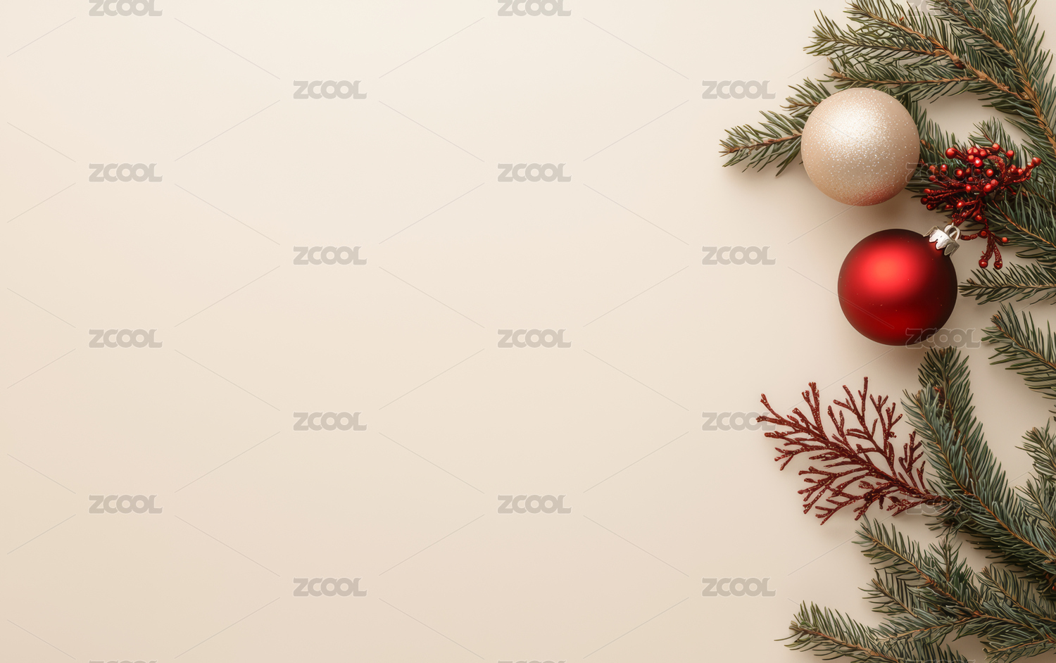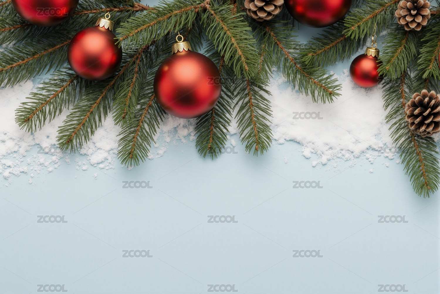 圣诞树,挂饰,红球,金球,松枝,节日,氛围,装饰,平面,构图