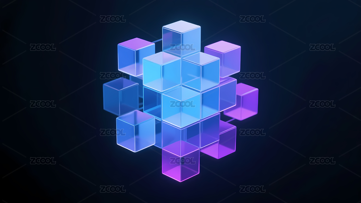蓝色,深蓝,科技,未来,渐变,抽象,紫色,几何,立方体,发光