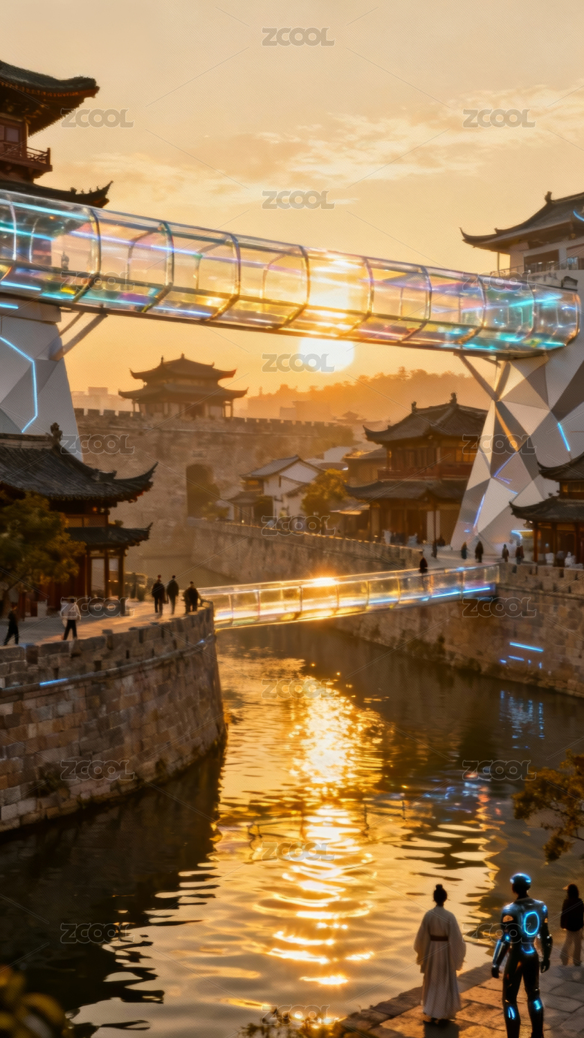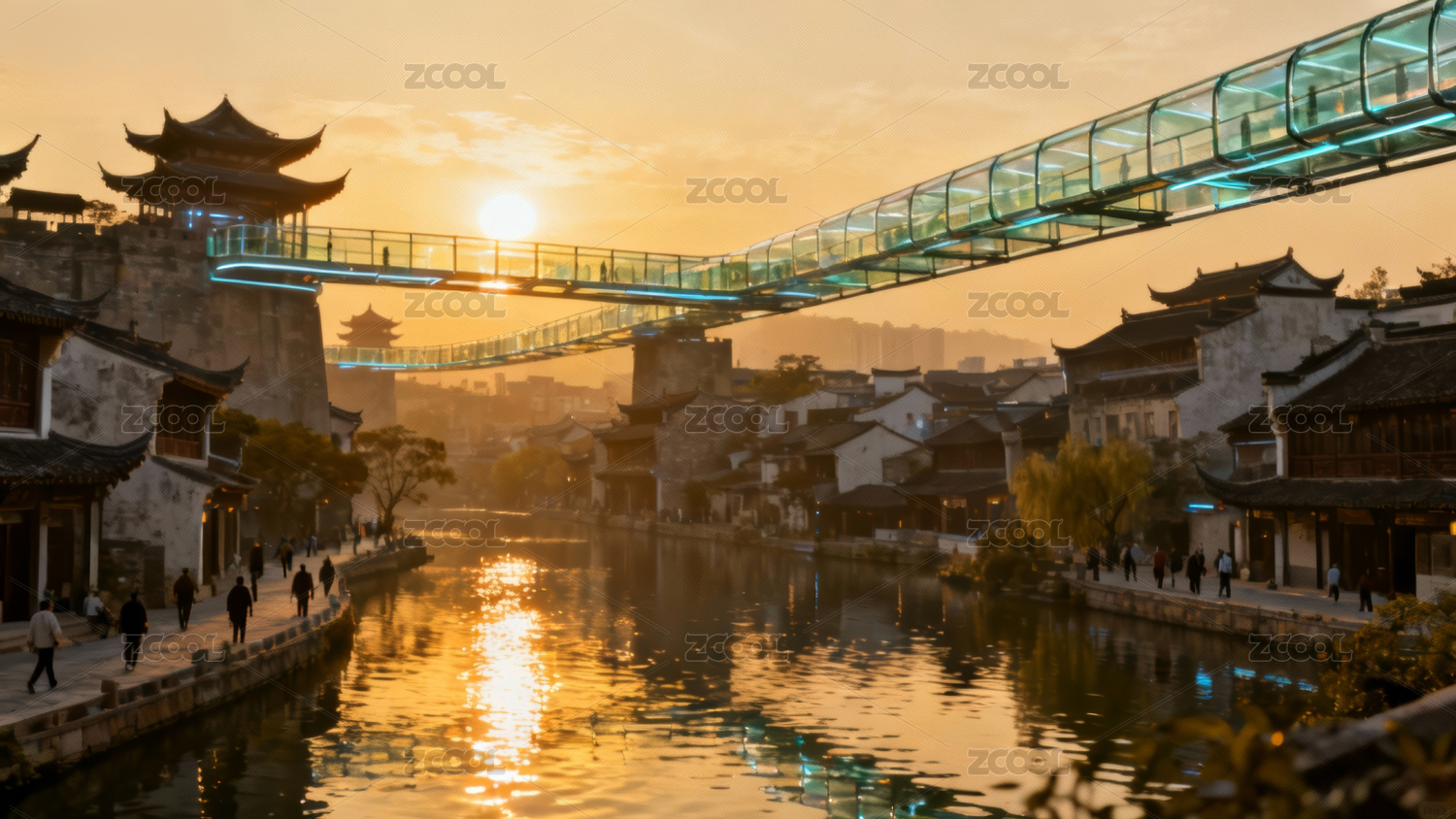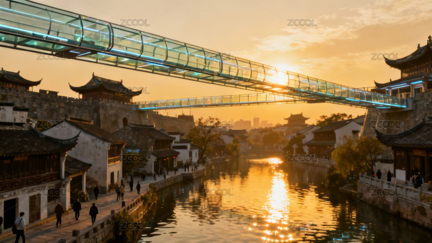 光影, 倒影, 水面, 宁静, 黄昏, 传统, 风景, 河流, 建筑,夕阳