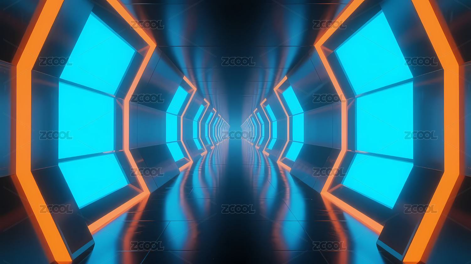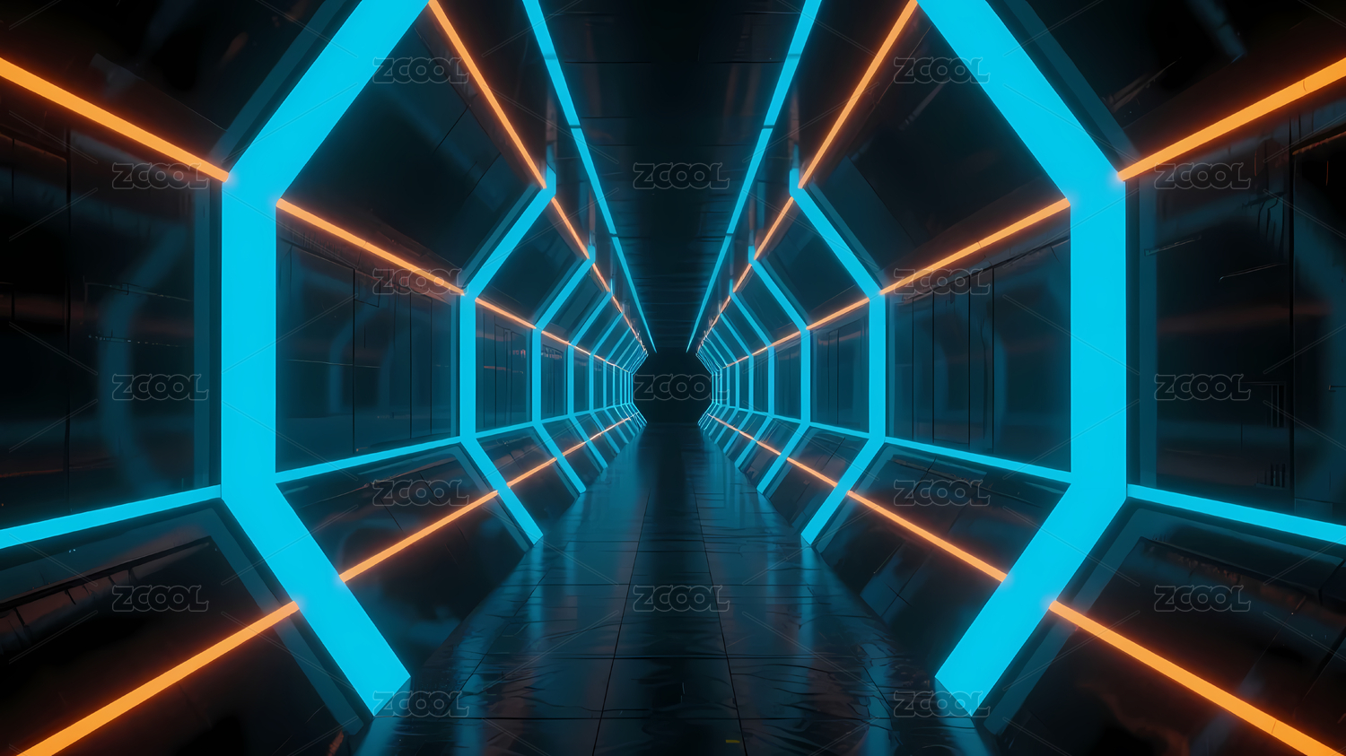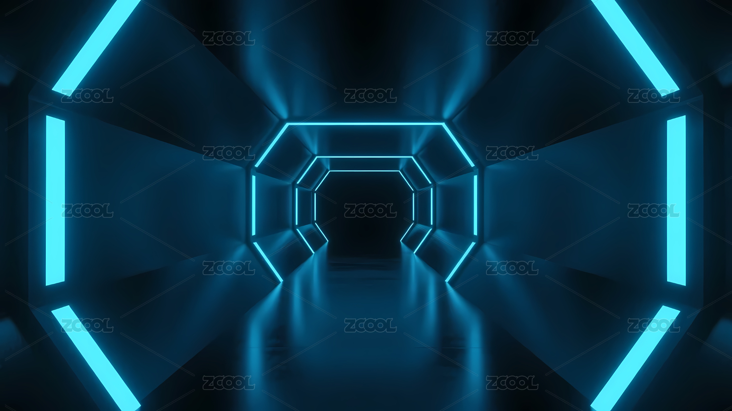 蓝色,隧道,未来,科技,深黑,六边形,几何,现代,光影,霓虹