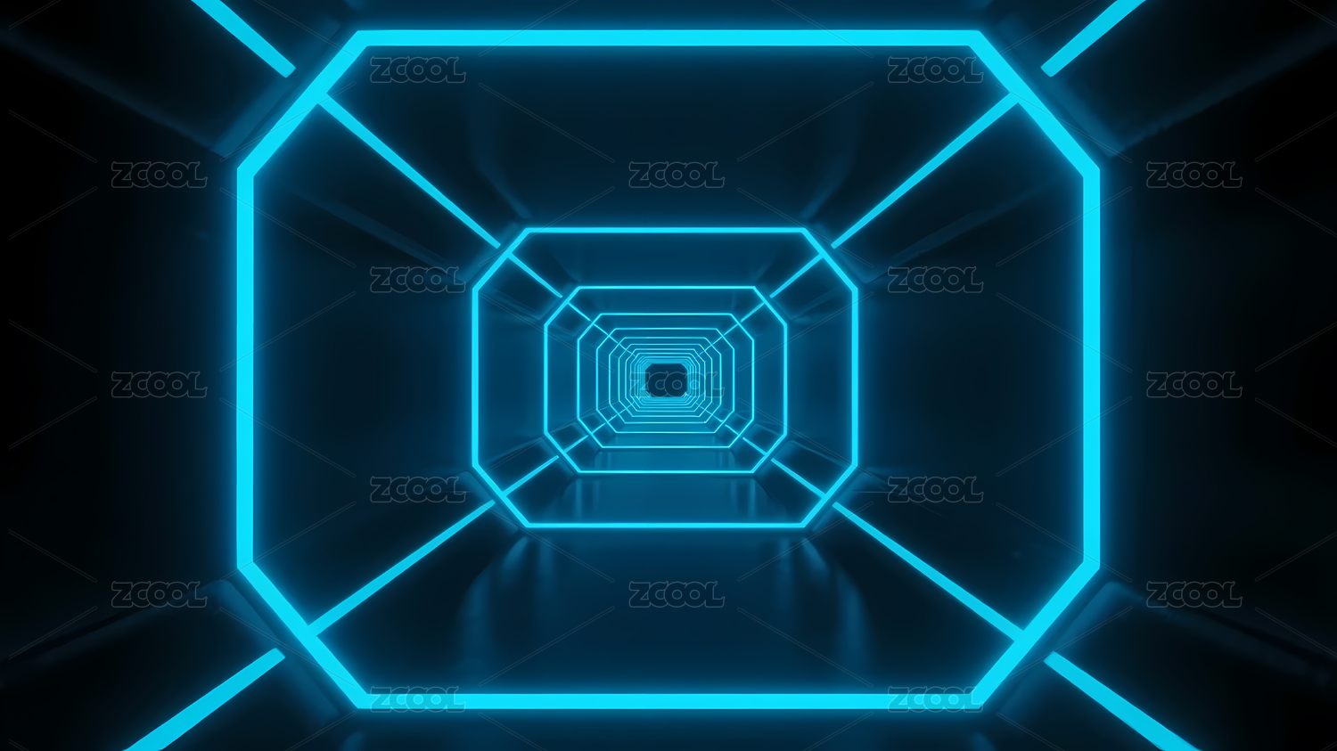 蓝色,隧道,未来,科技,深黑,六边形,几何,线条,霓虹,空间