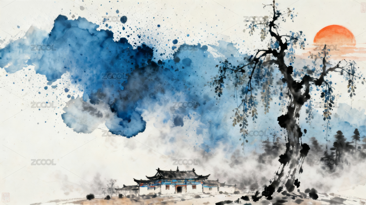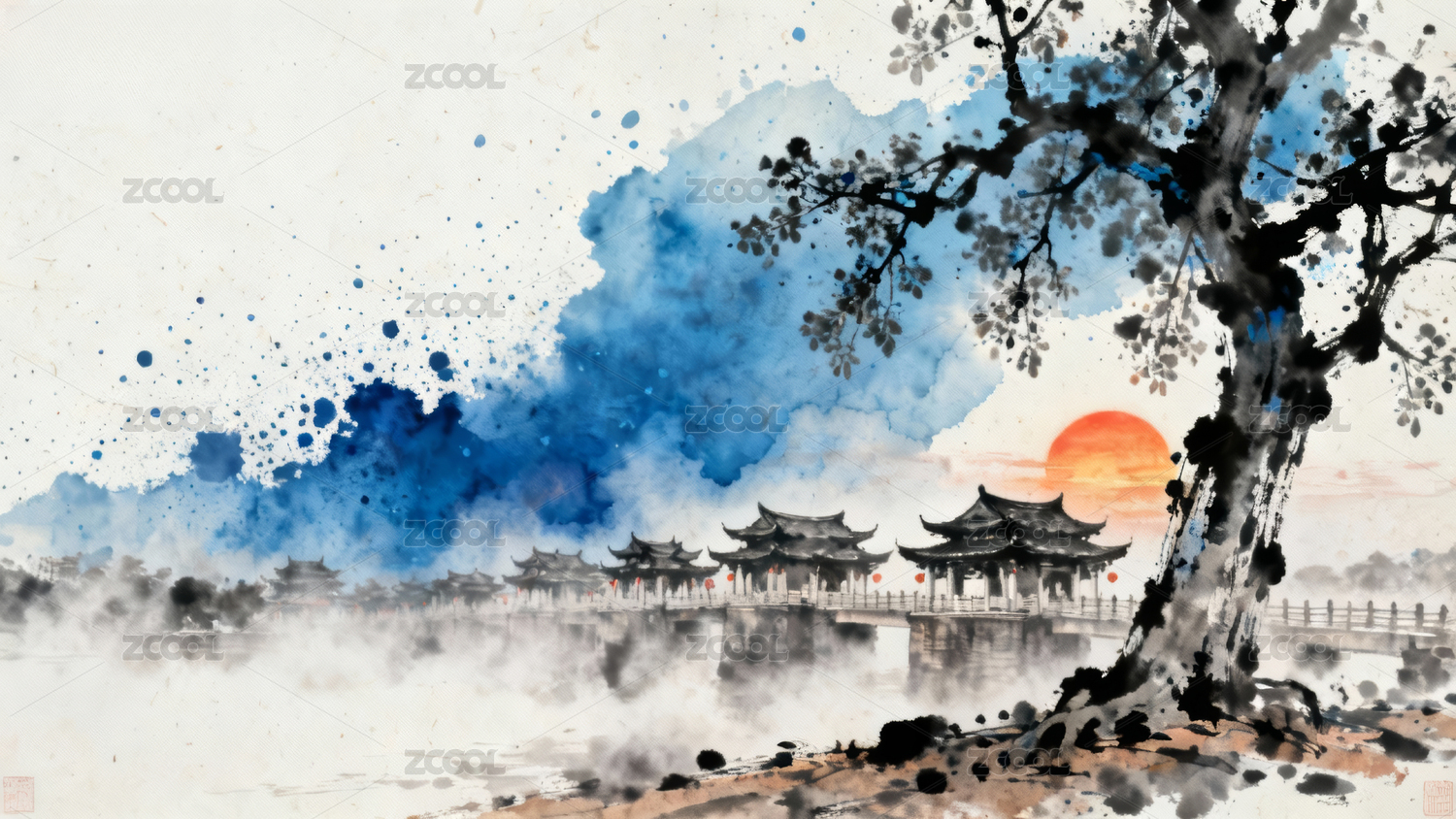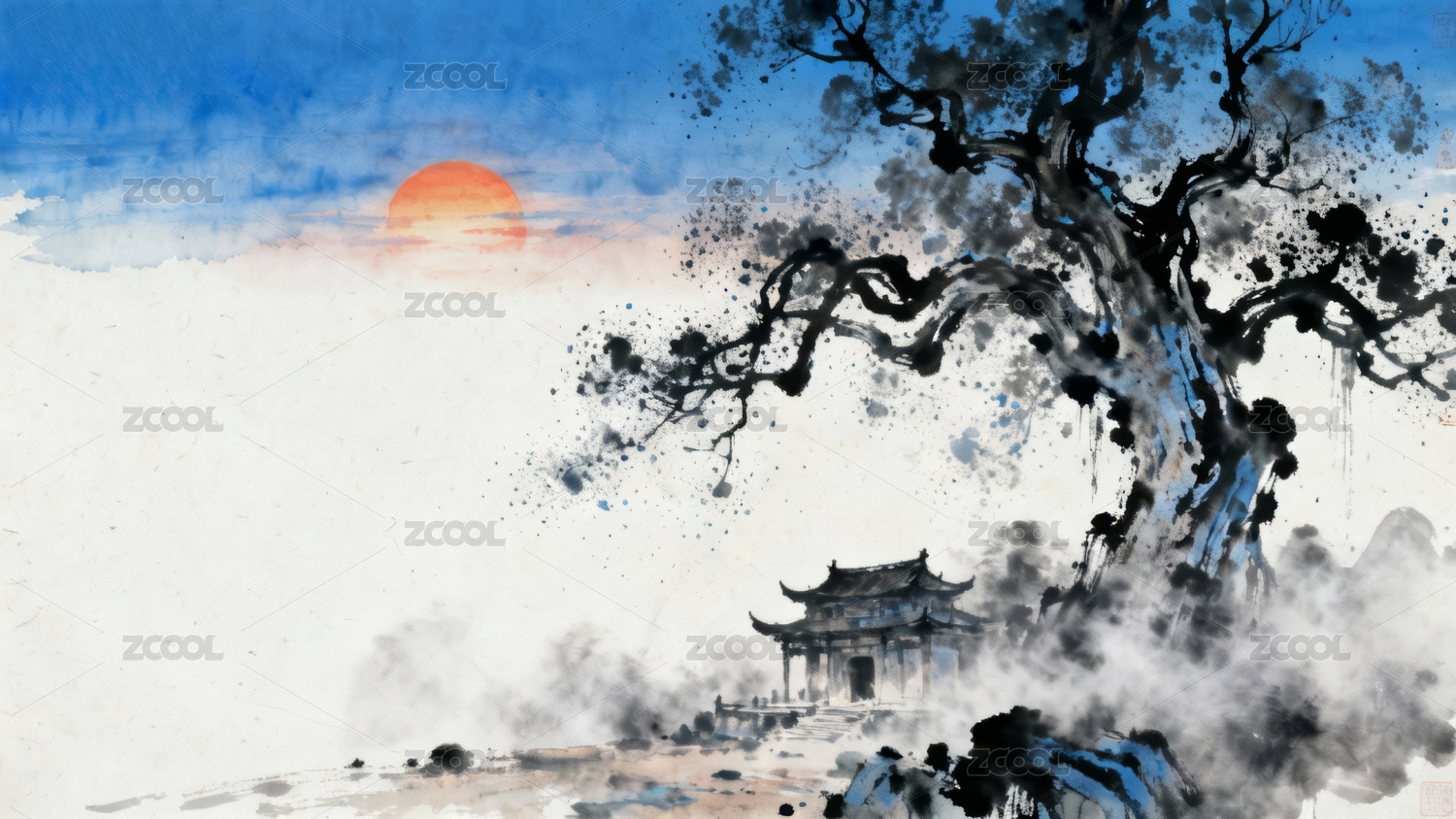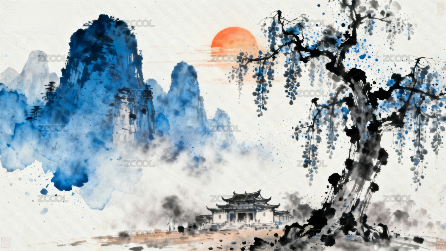 自然, 风景, 艺术, 意境, 传统, 笔触, 山水, 东方, 绘画, 白色
