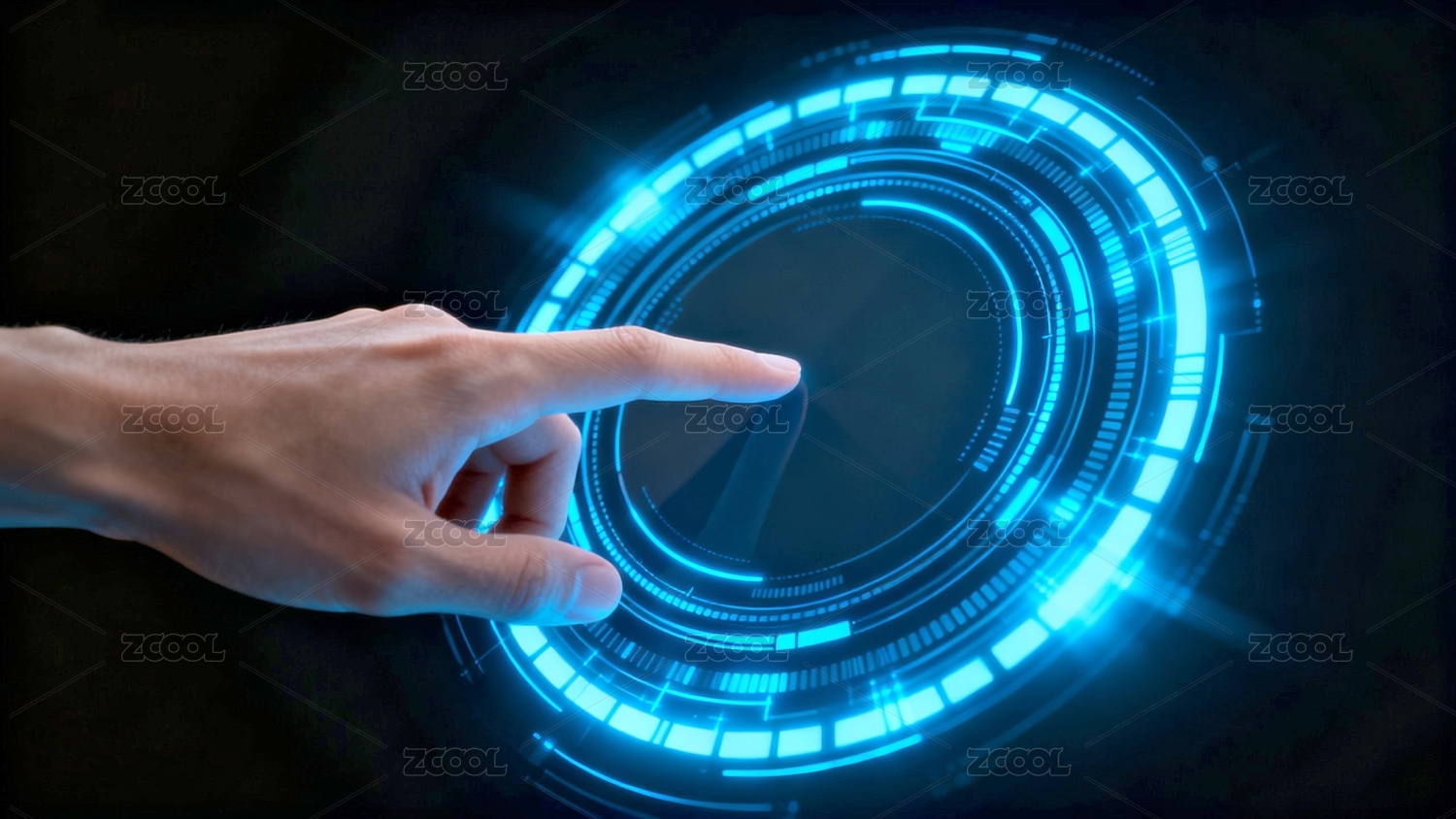 人物手指全息数字屏幕科技背景