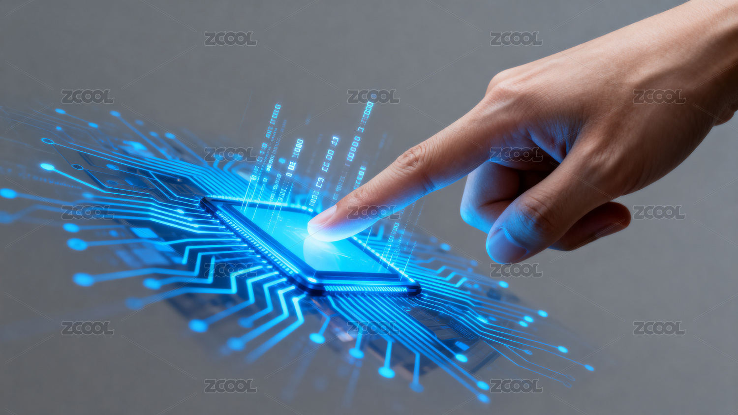 手指触碰发光芯片科技感十足