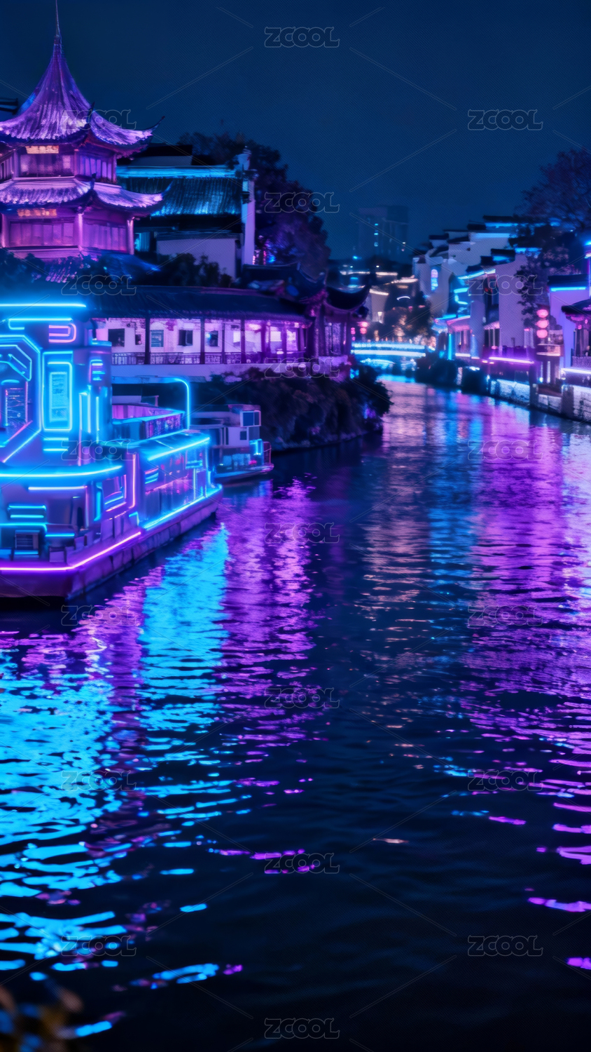 夜色霓虹水道