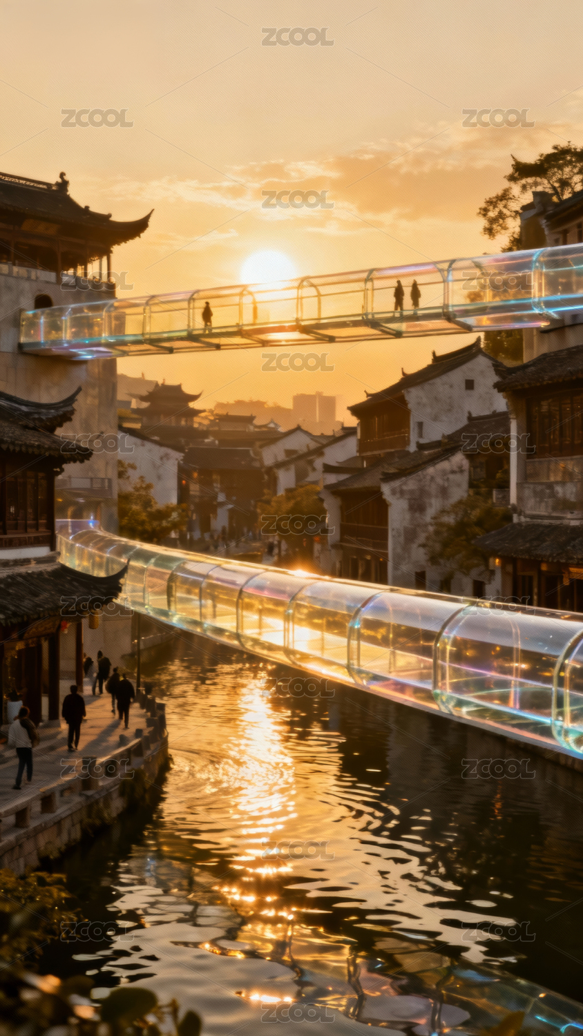 古桥夕照水乡景