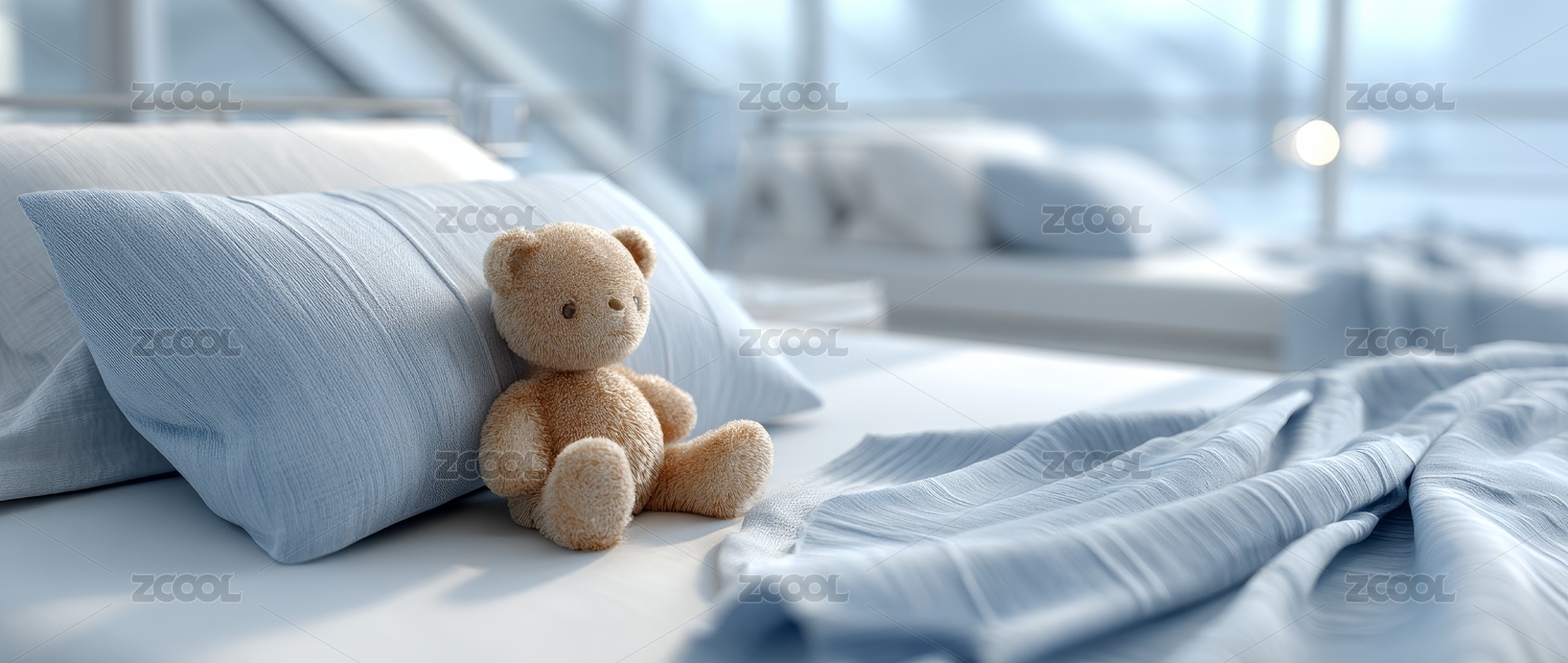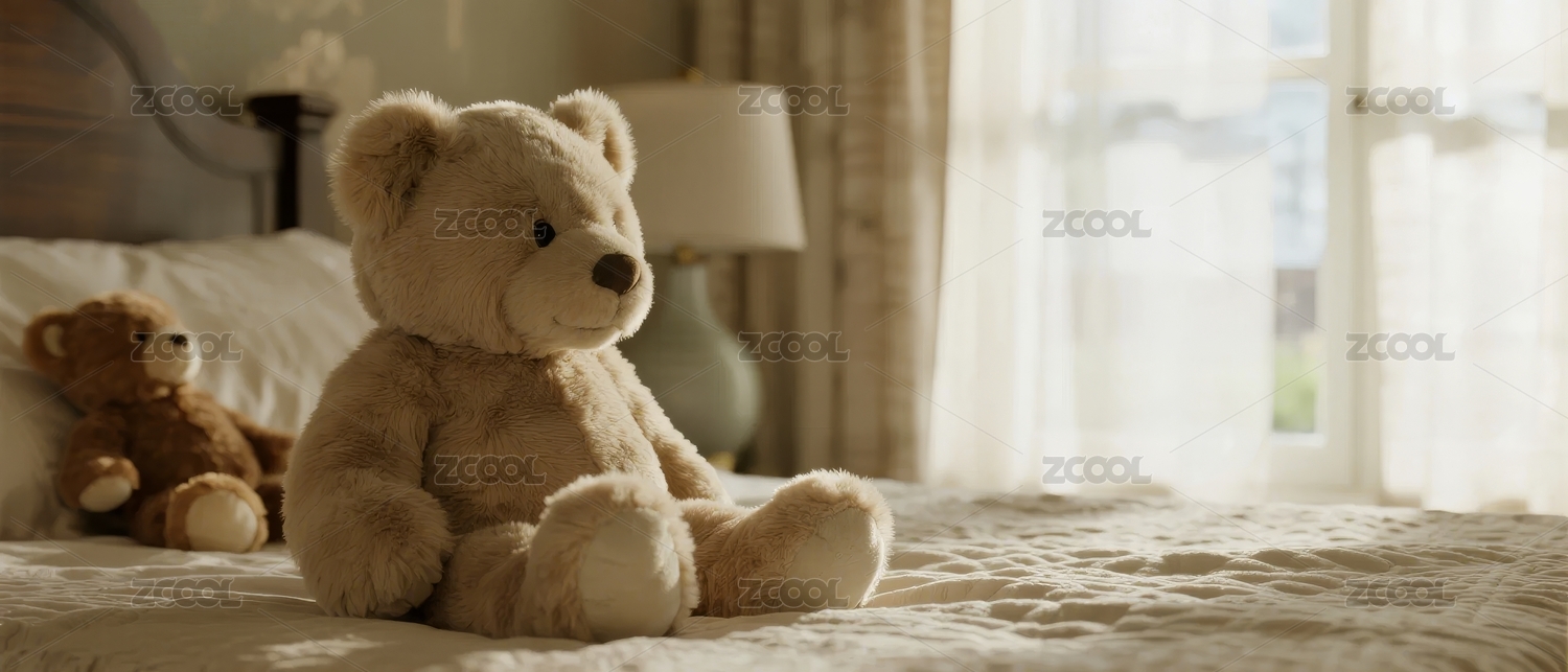 宁静,室内,泰迪熊,床,枕头,舒适,可爱,毛绒,温馨,放松