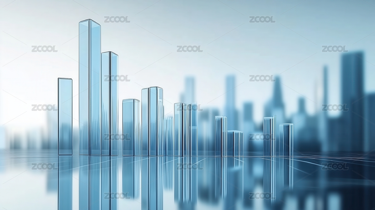 科技城市虚拟概念玻璃建筑水面倒影背景
