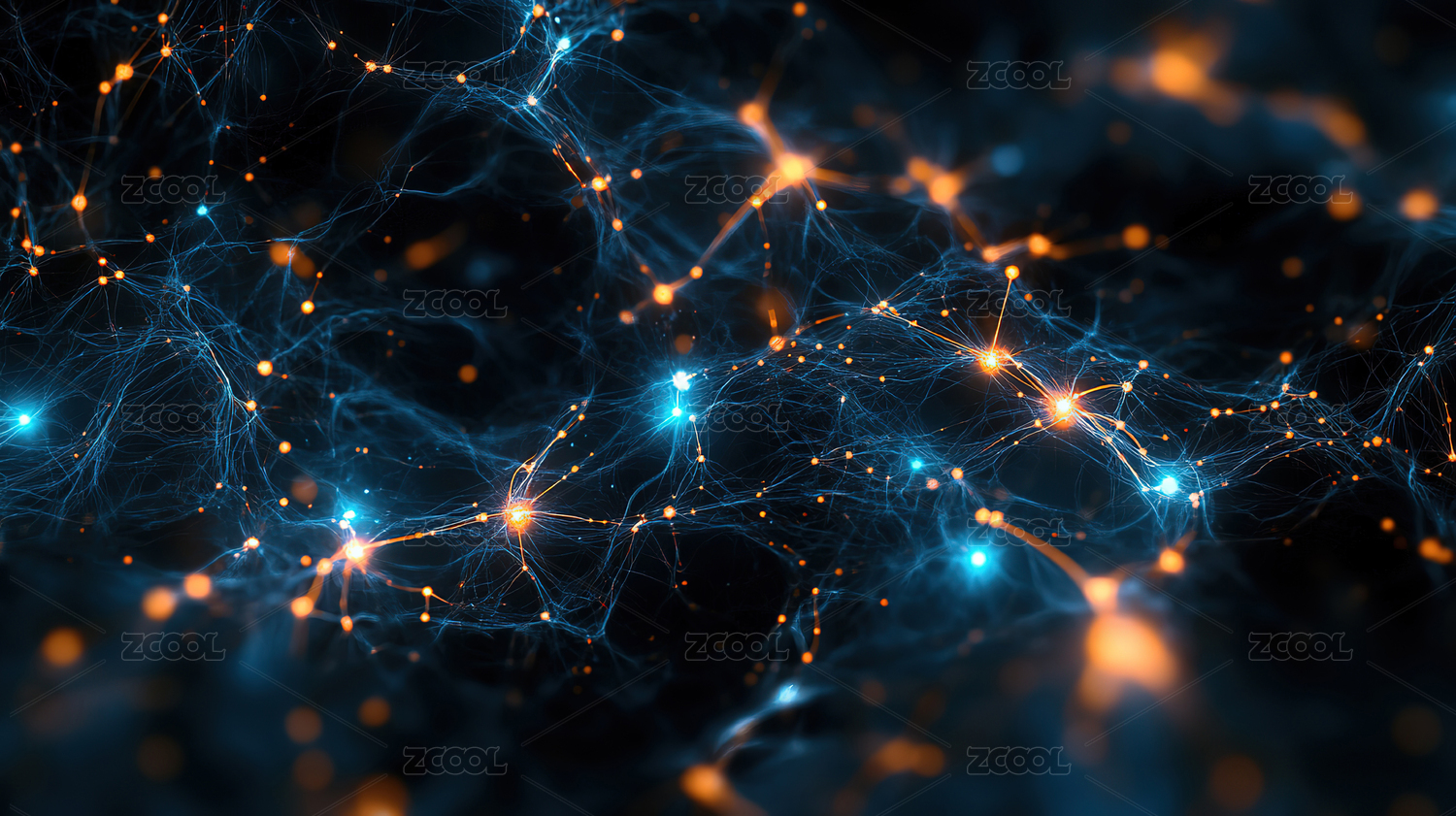 网络,抽象,科技,数据,连接,节点,发光,橙色,蓝色,未来