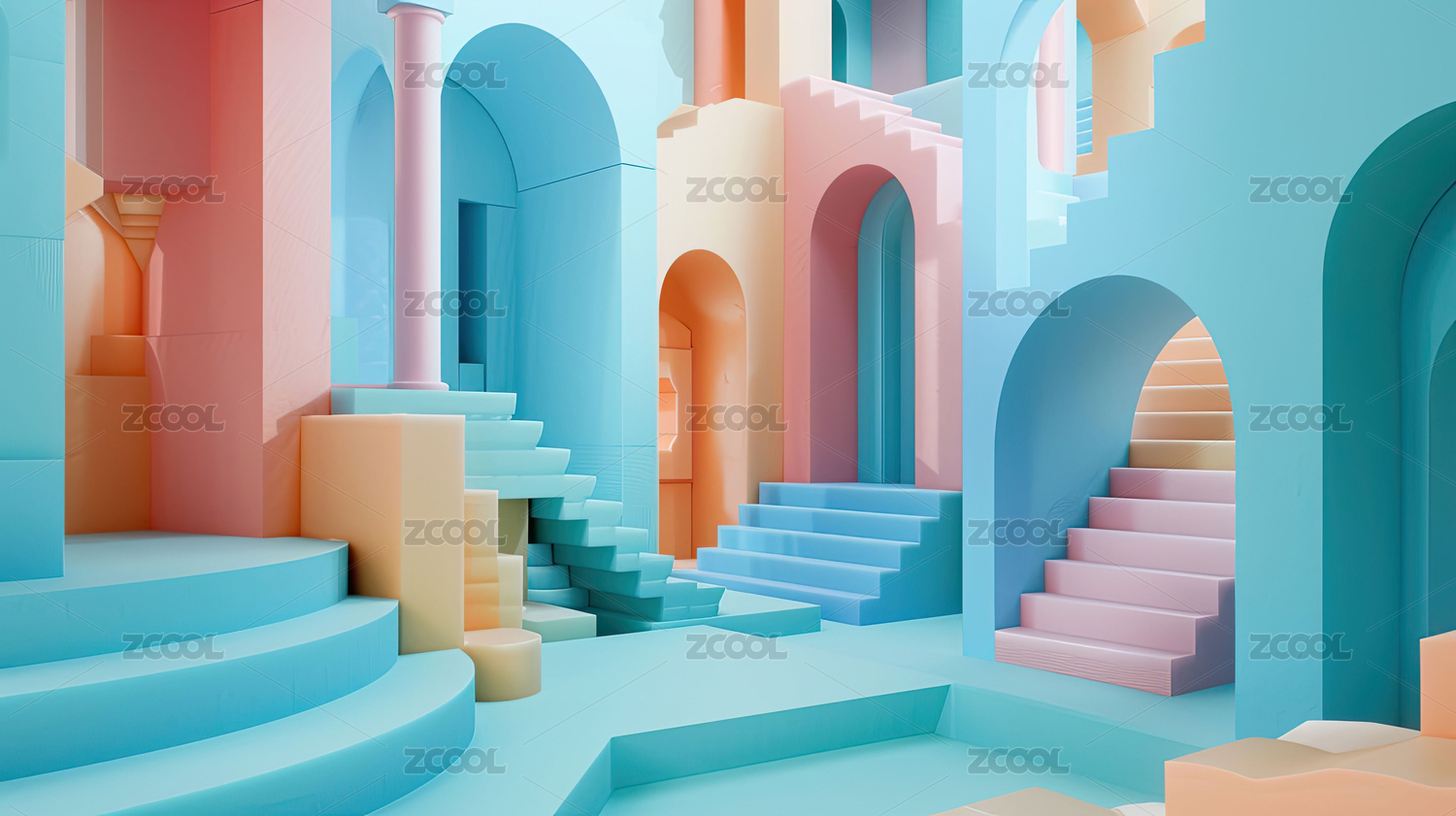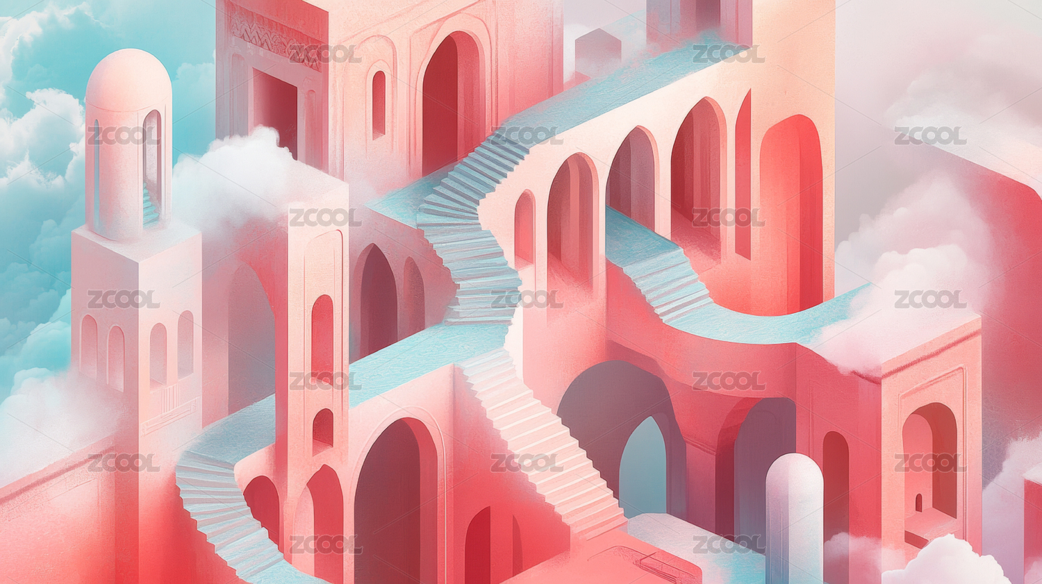 建筑,梦幻,楼梯,拱门,色彩,柔和,迷宫,神秘,遥远,奇异