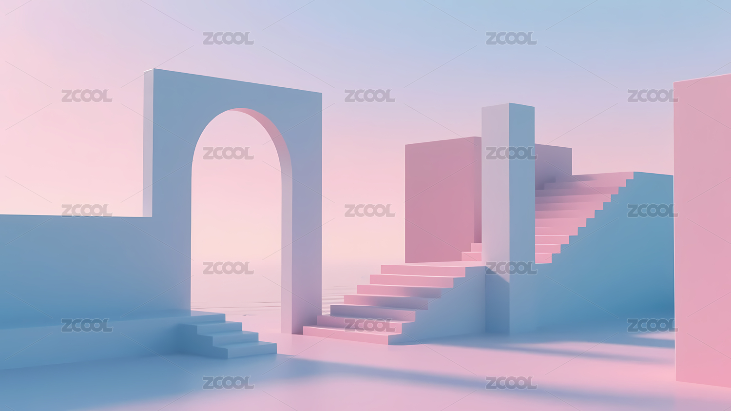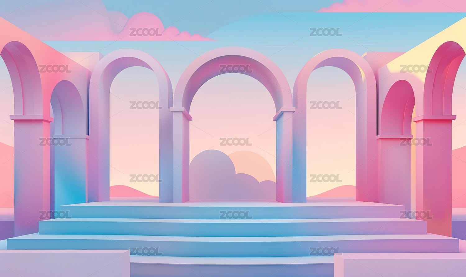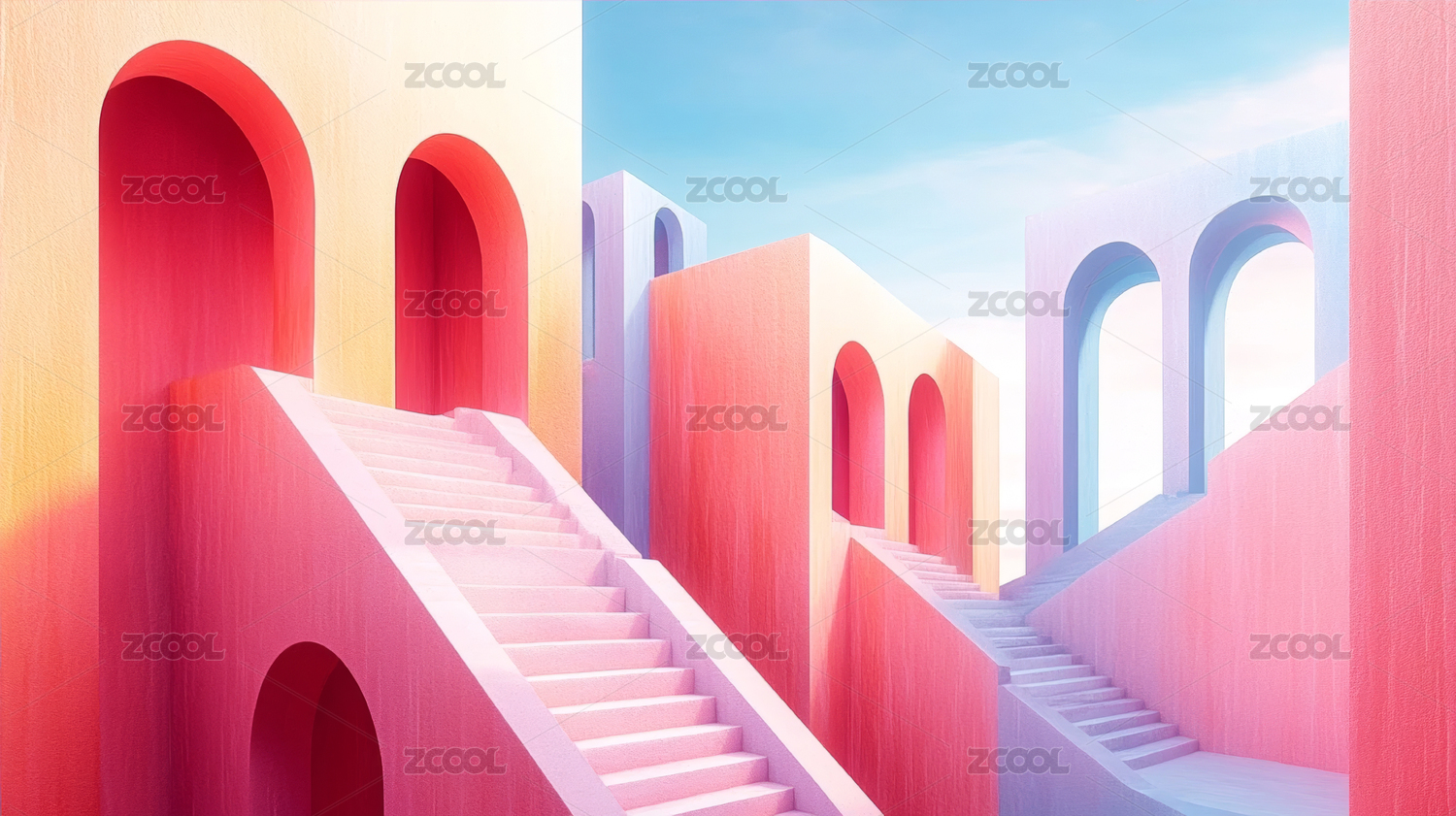 彩色拱门阶梯梦幻场景