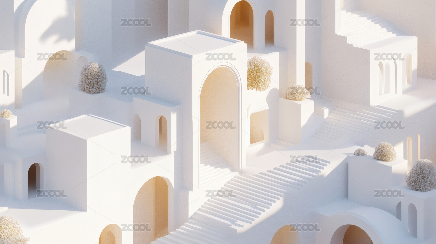 柔和光影下的抽象迷宫建筑