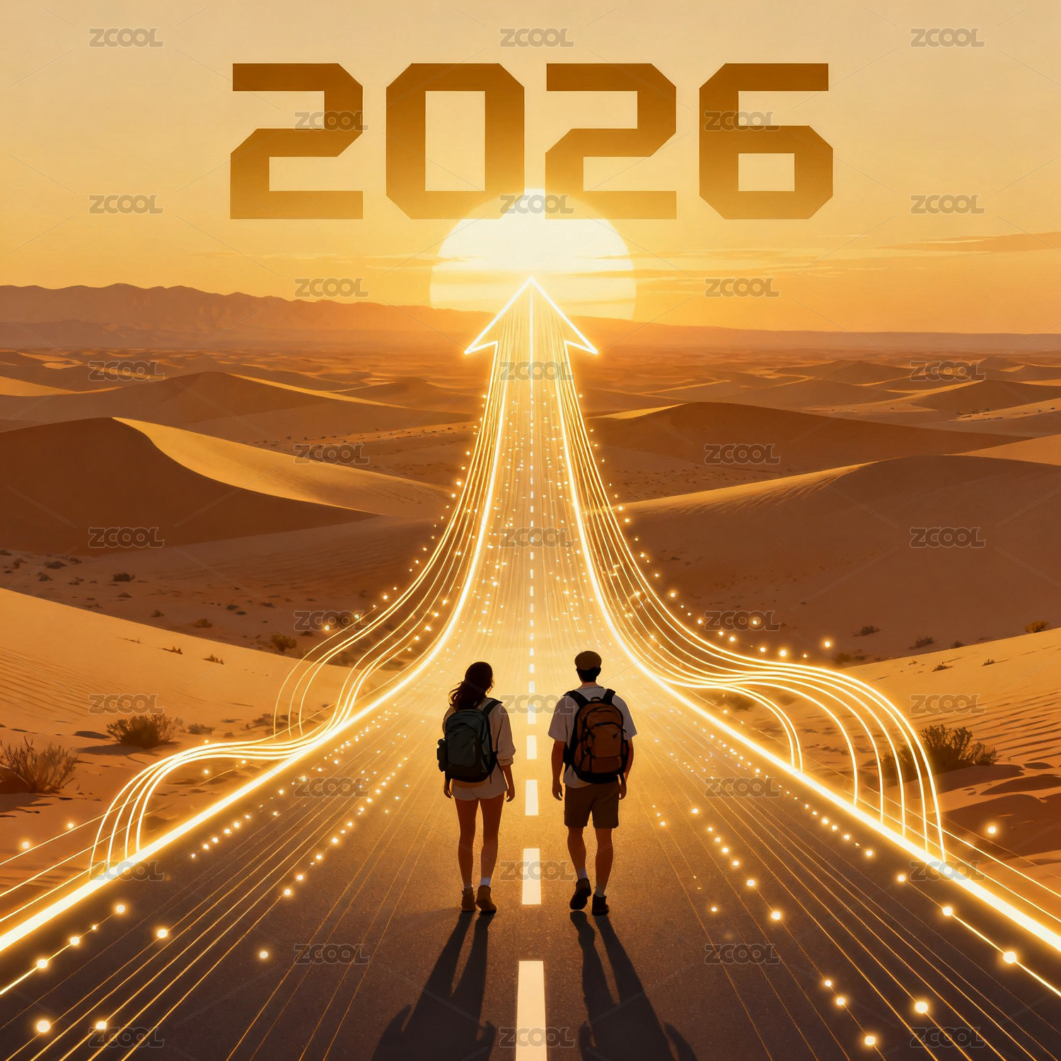 2026情侣沙漠徒步旅行概念图