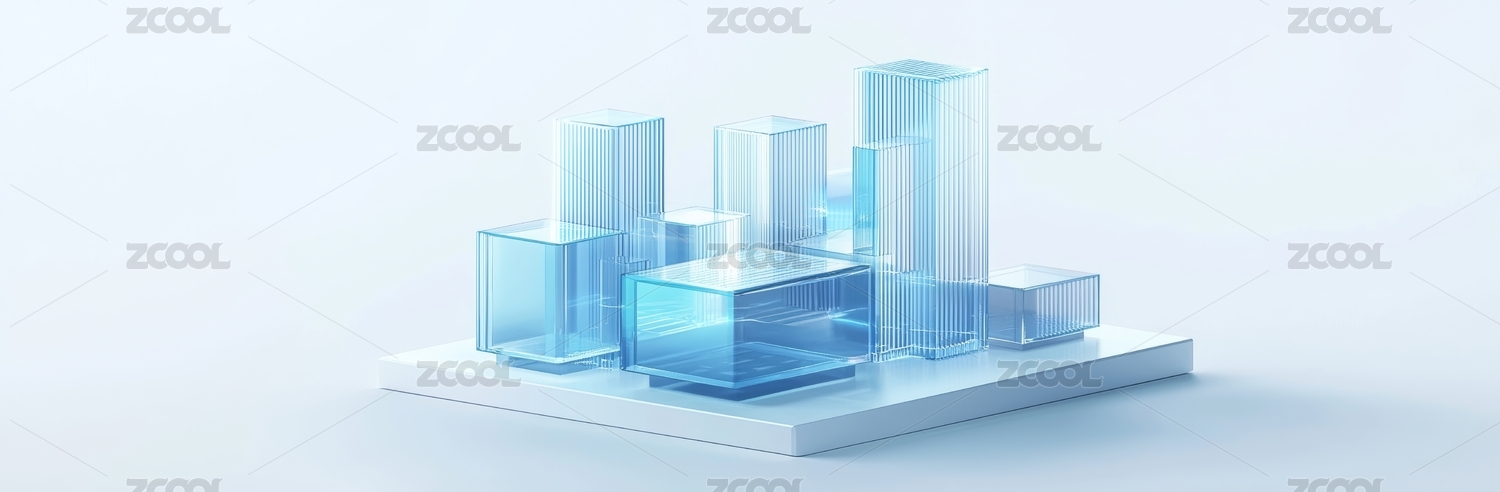 蓝色透明立方体几何抽象艺术