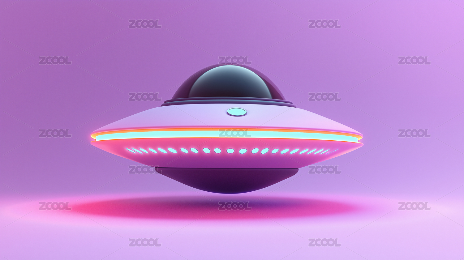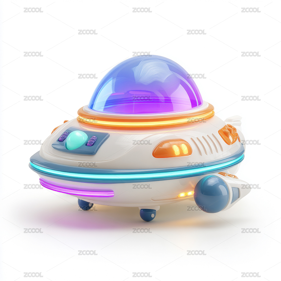 霓虹光效的未来科技卡通飞船