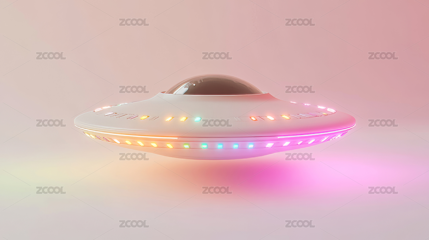 炫彩飞船未来科技科幻全息色彩3D插画