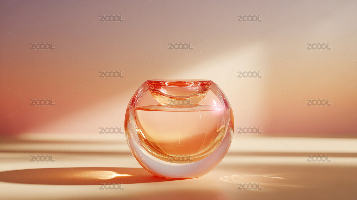 粉蓝光影下的香水瓶,呈现高端时尚感