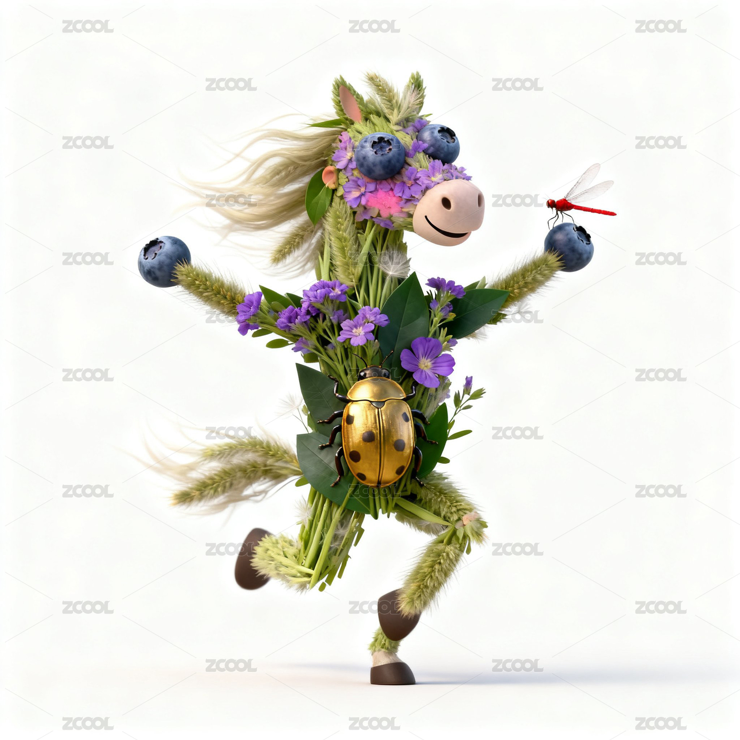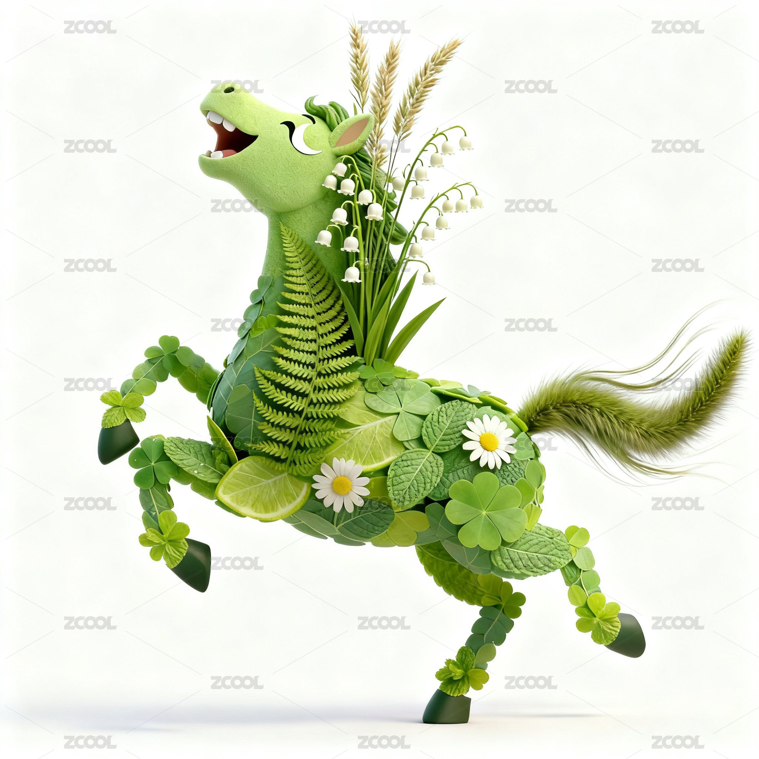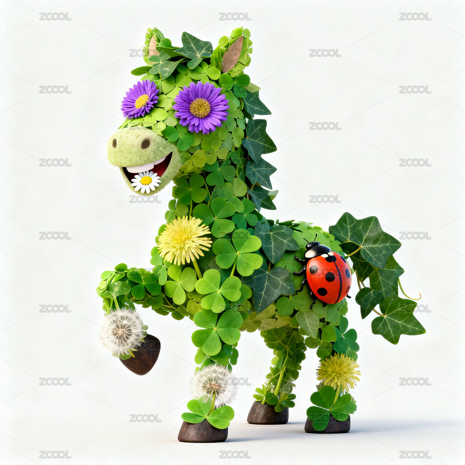 绿植,绿叶,花朵,小野花,花儿,小昆虫,可爱,小马,生肖,野草
