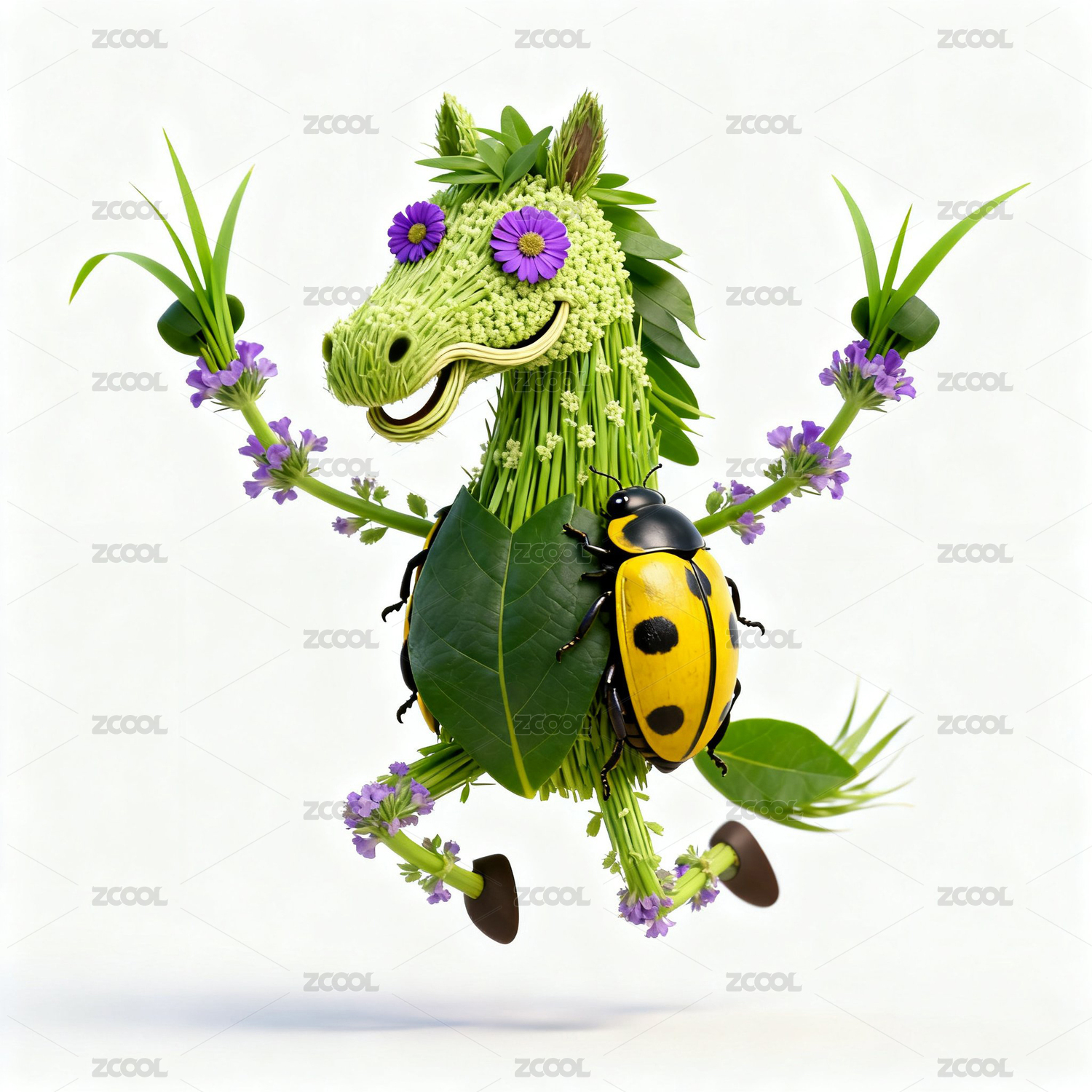 绿植,绿叶,花朵,小野花,花儿,小昆虫,可爱,小马,生肖,野草