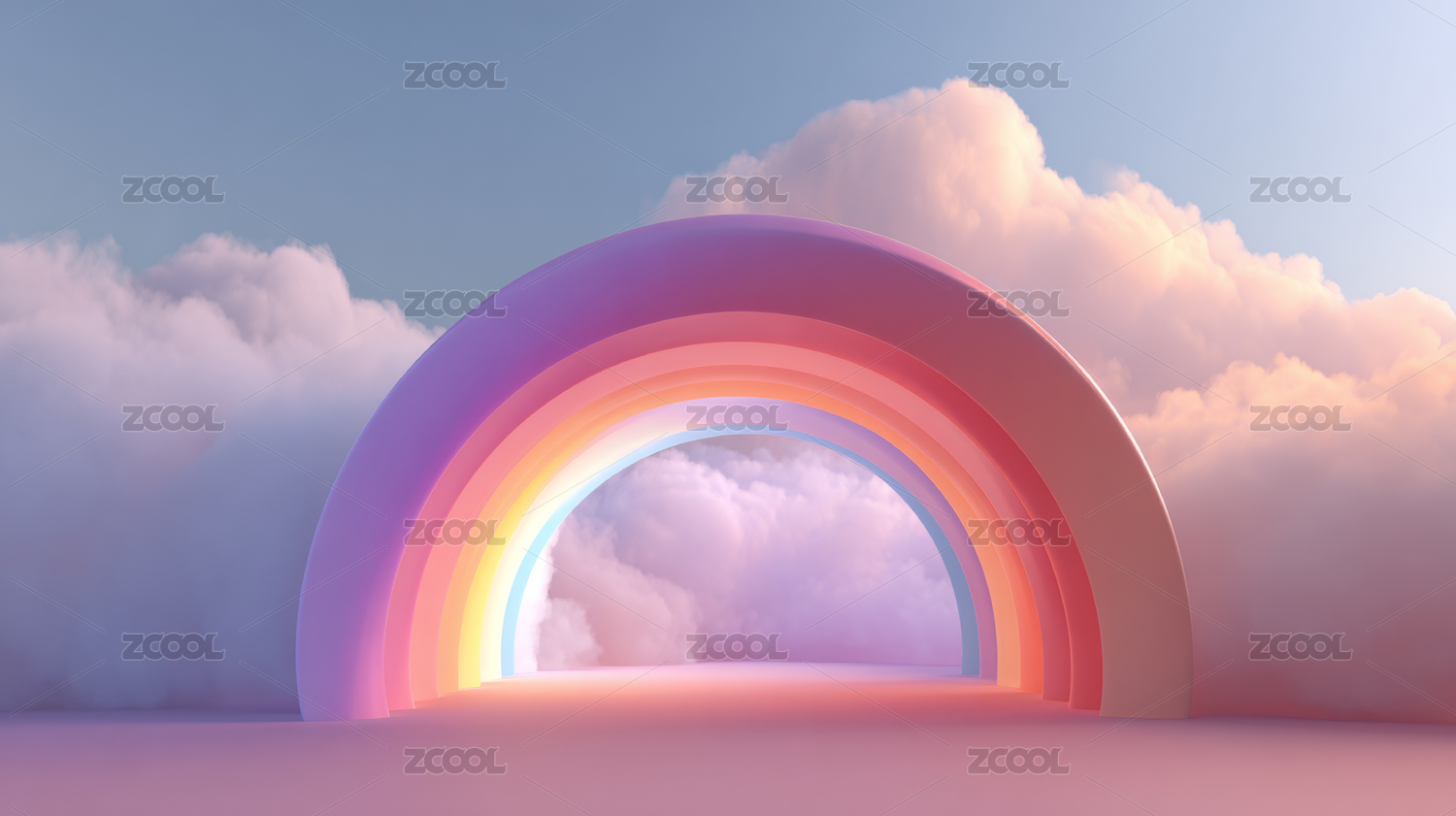 彩虹,拱门,云朵,梦幻,仙境,渐变,柔和,唯美,浪漫,奇幻