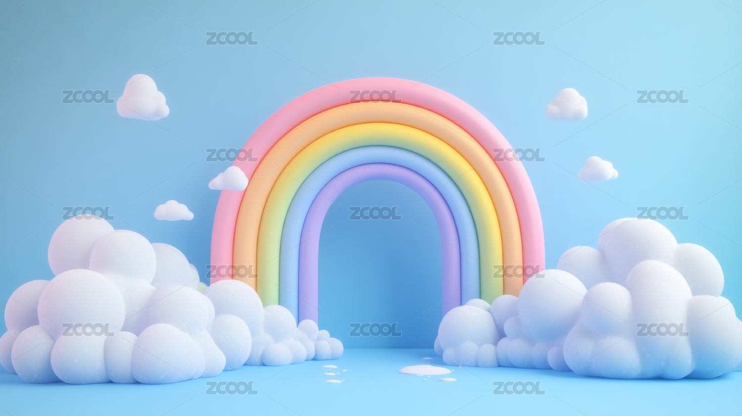 3D风格彩虹和云朵