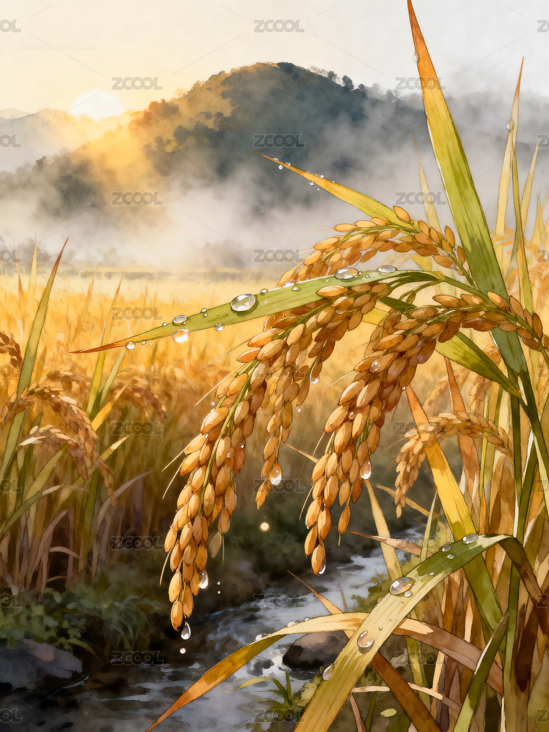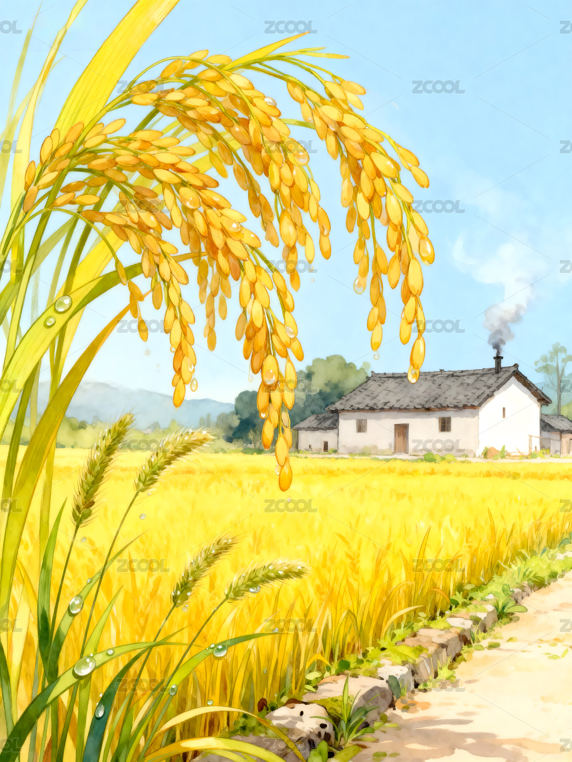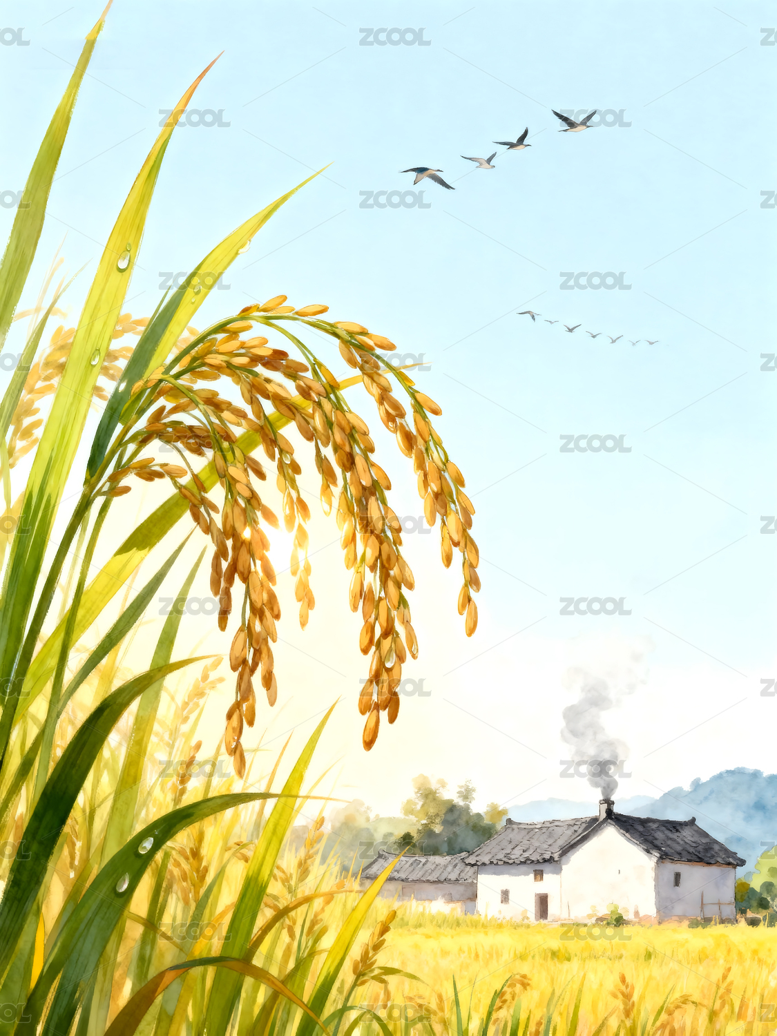 水彩稻穗田园丰收
