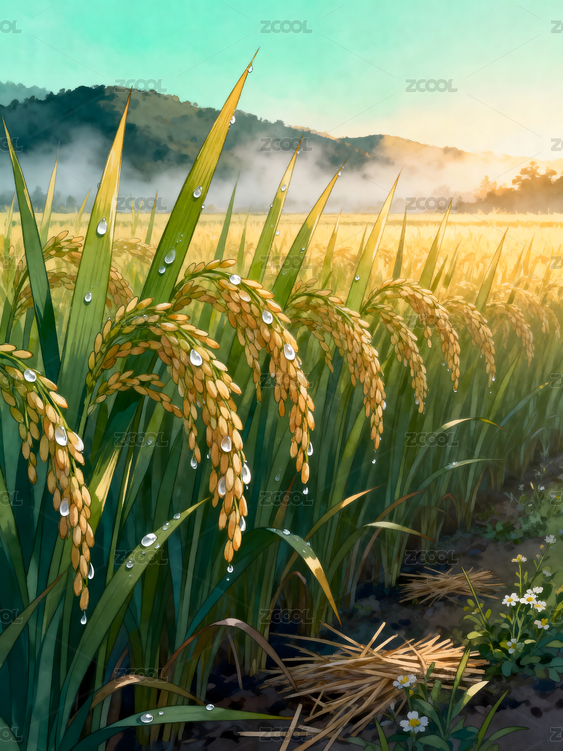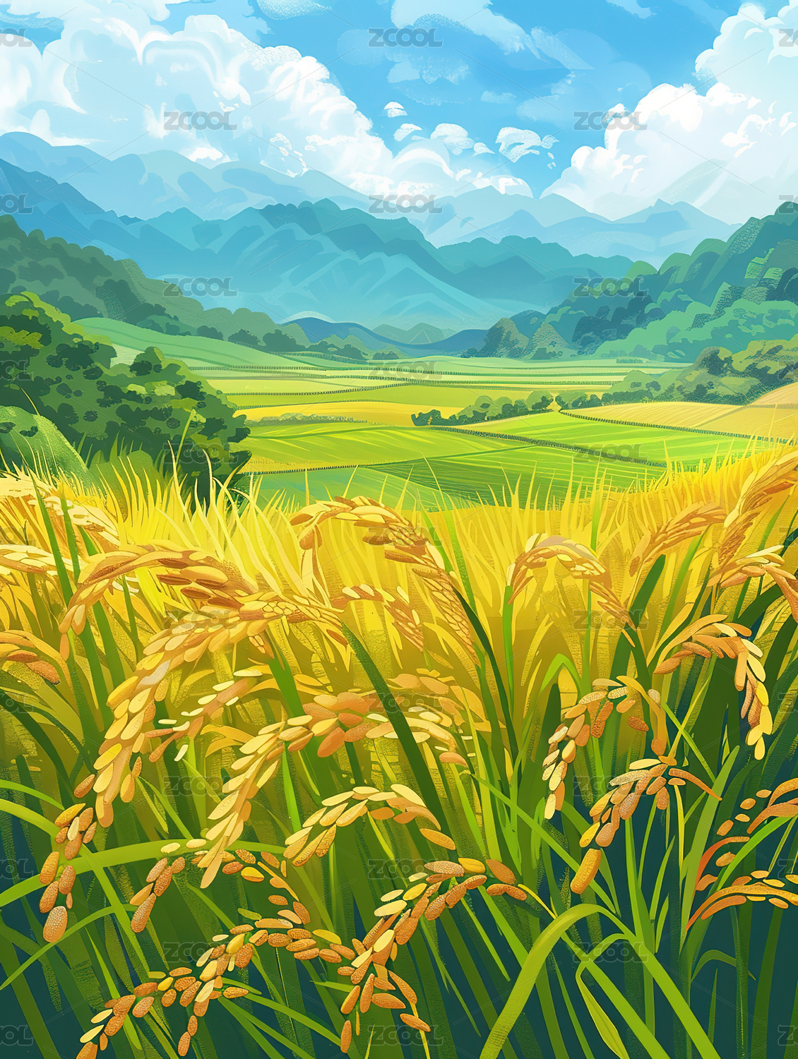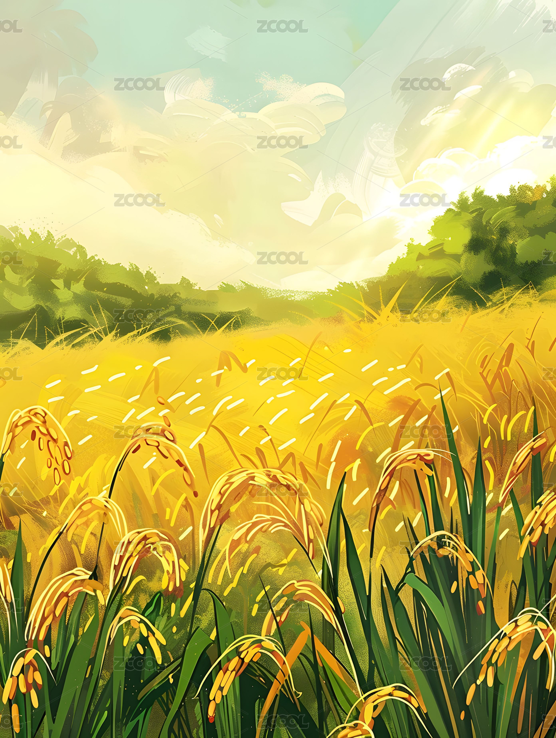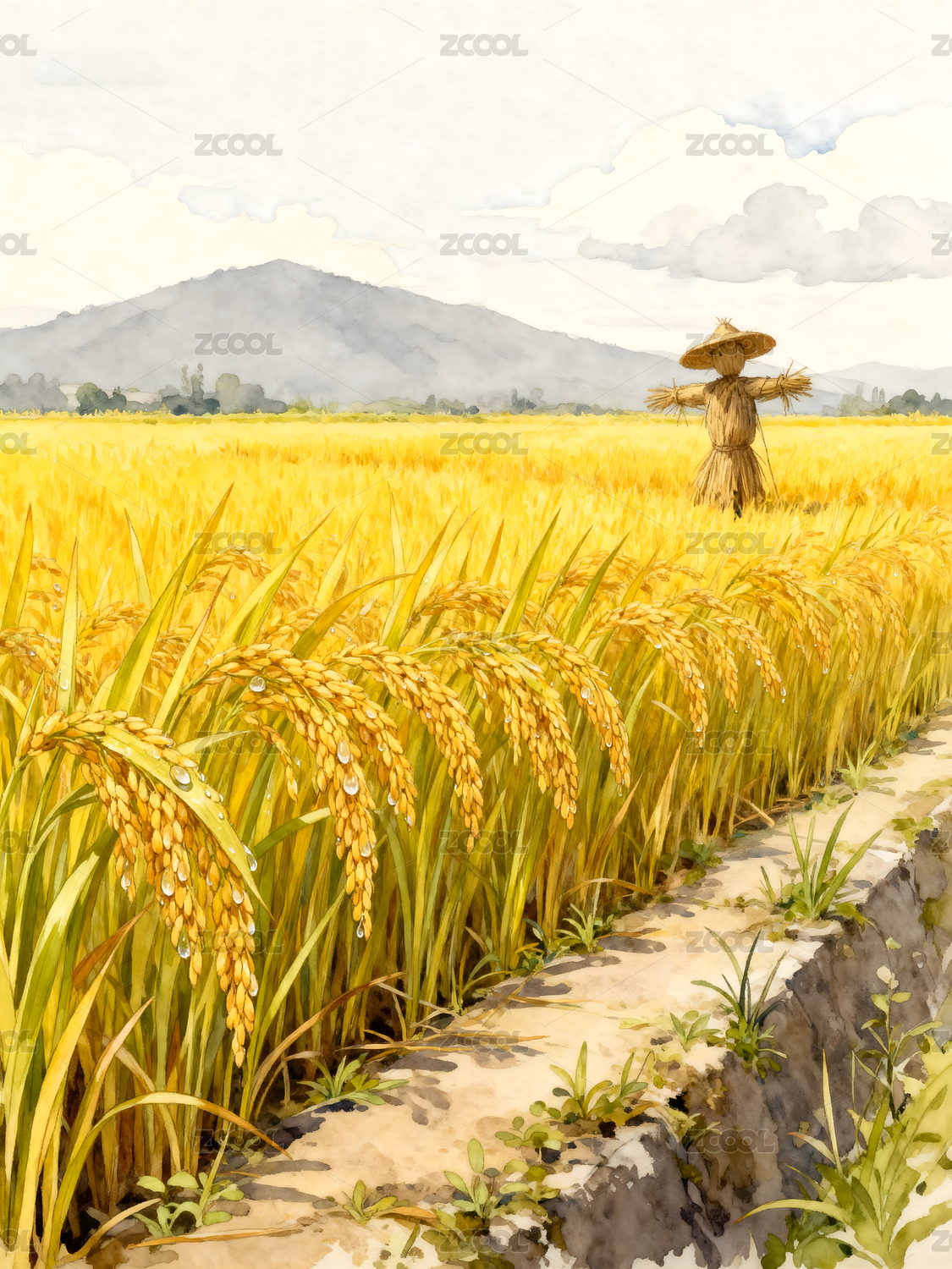 水彩稻穗田园丰收