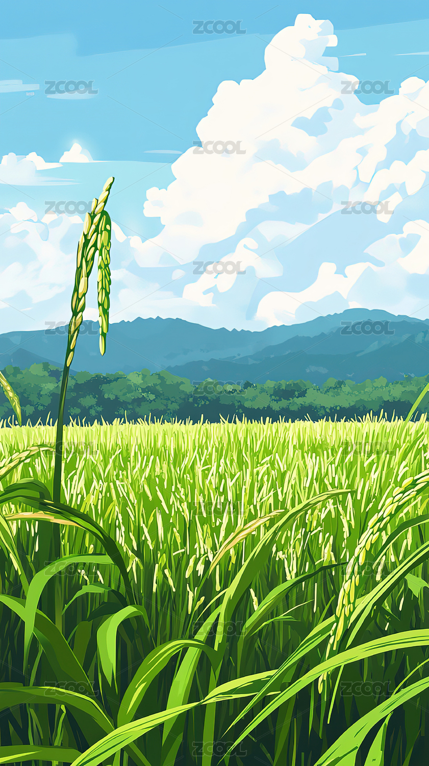 芒种-麦穗近景插画