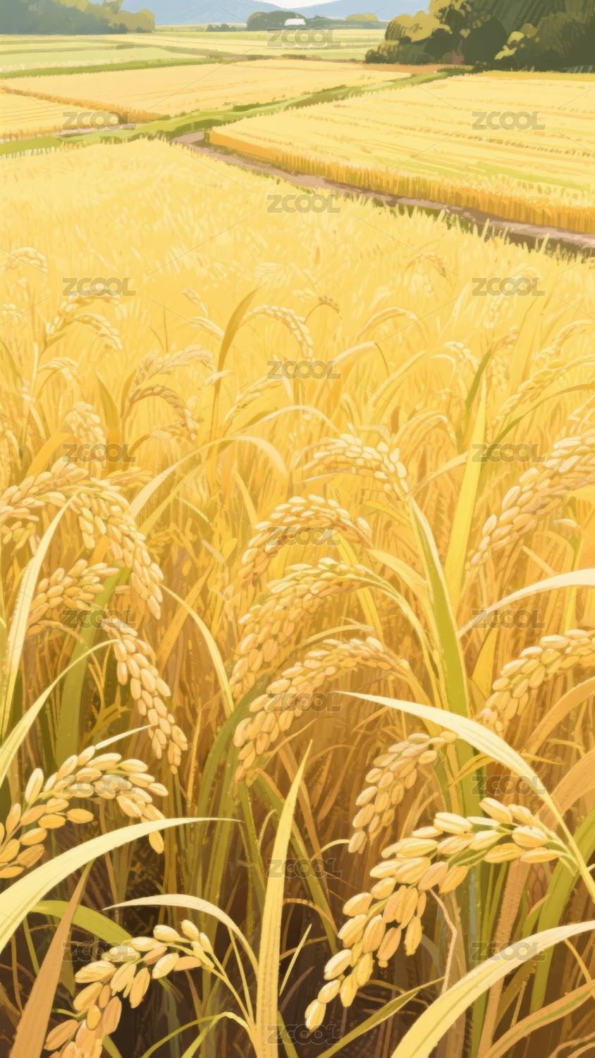 金秋稻田稻穗丰收图
