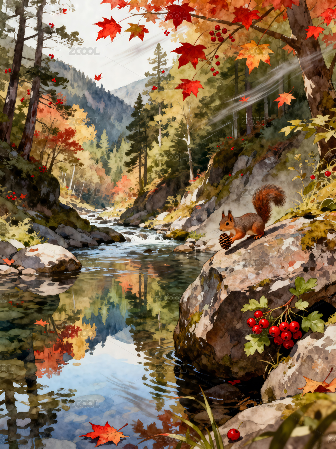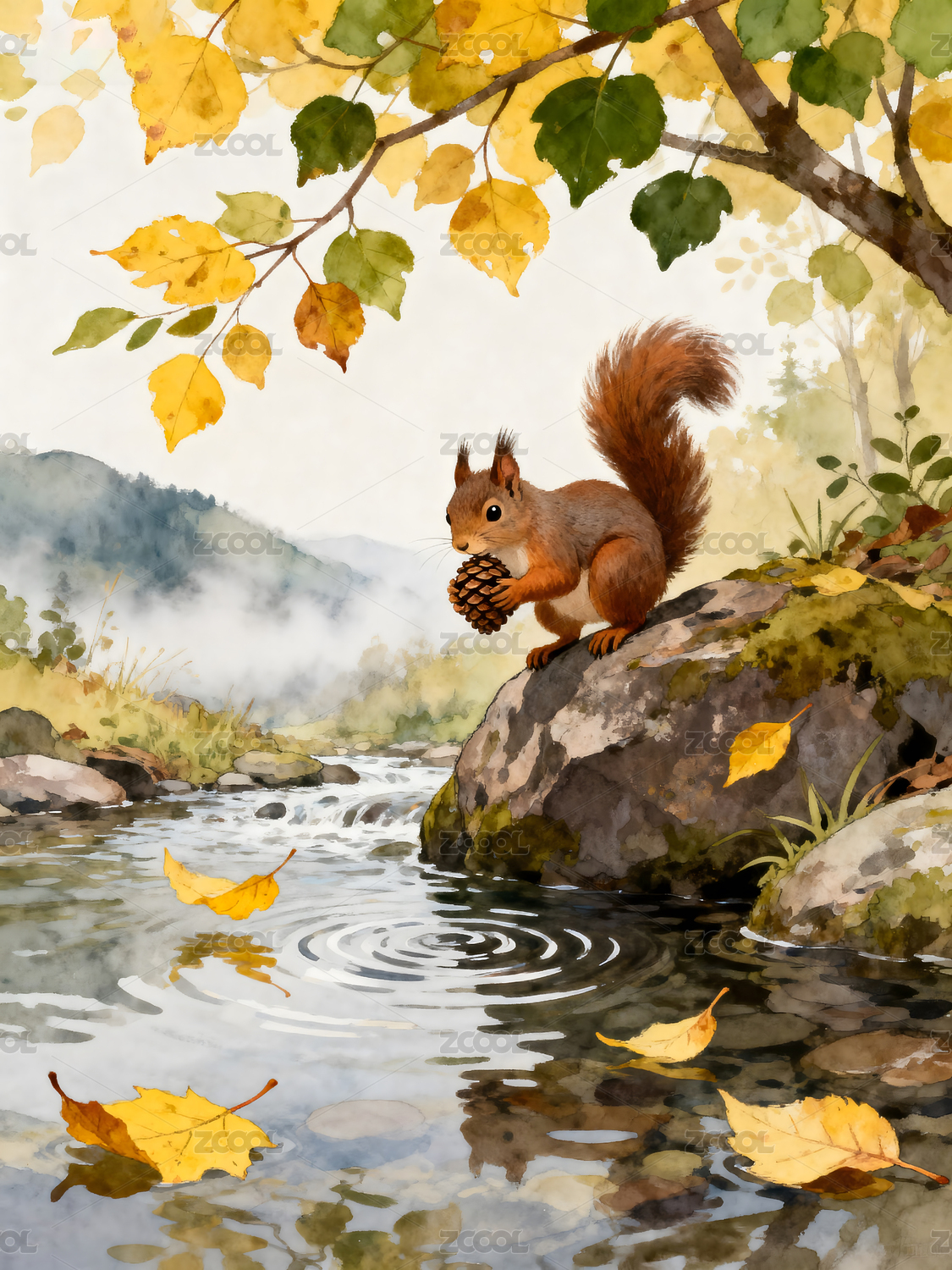 松鼠,生态,清晨,松果,自然,秋天,光影,秋季,阳光,树叶