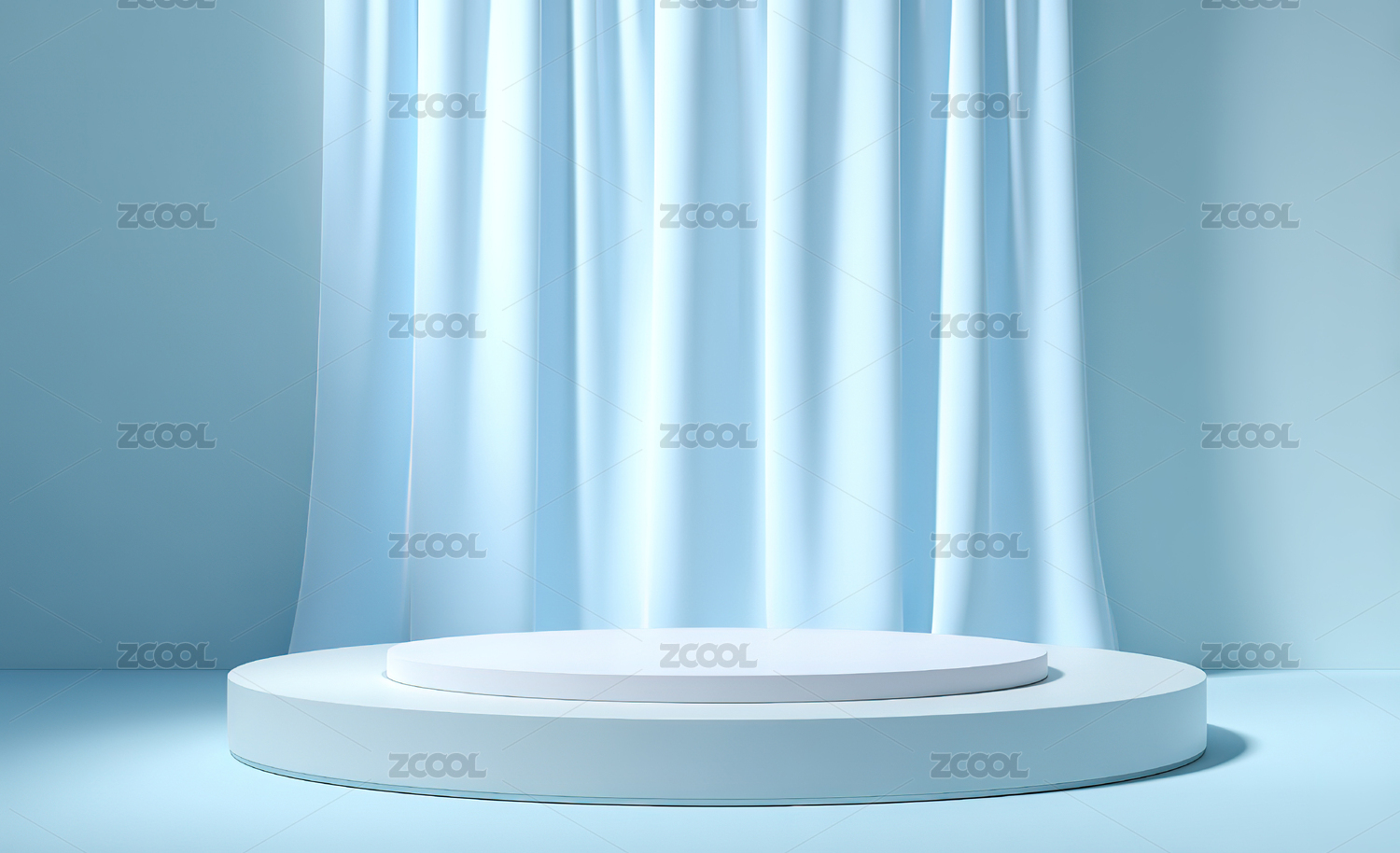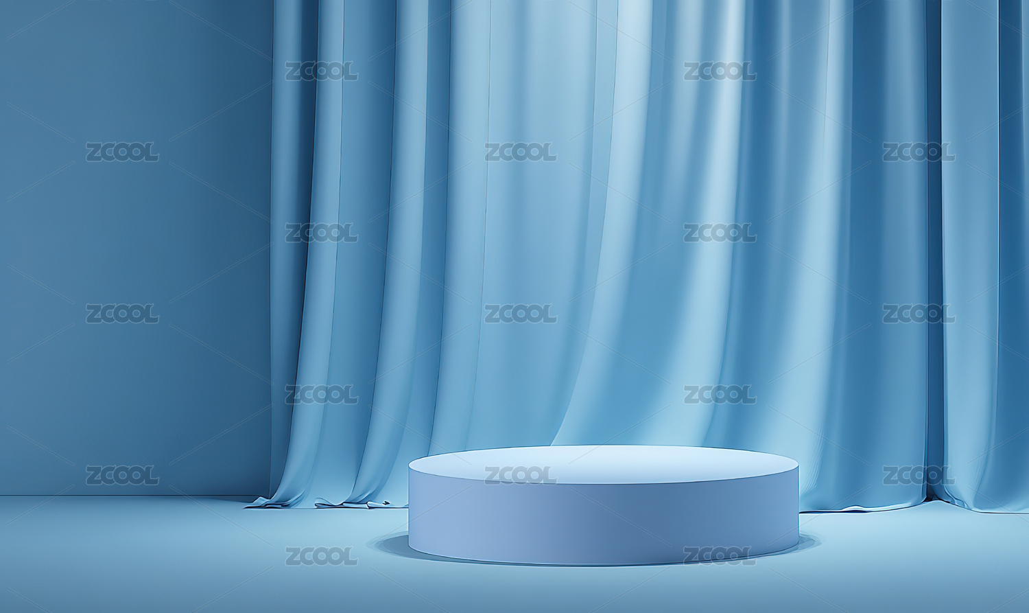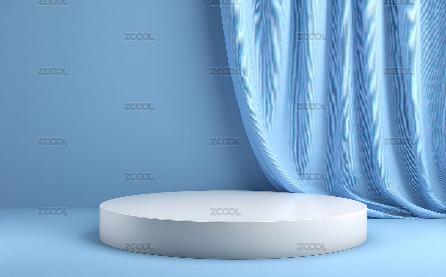 蓝色幕布前的白色圆形展台