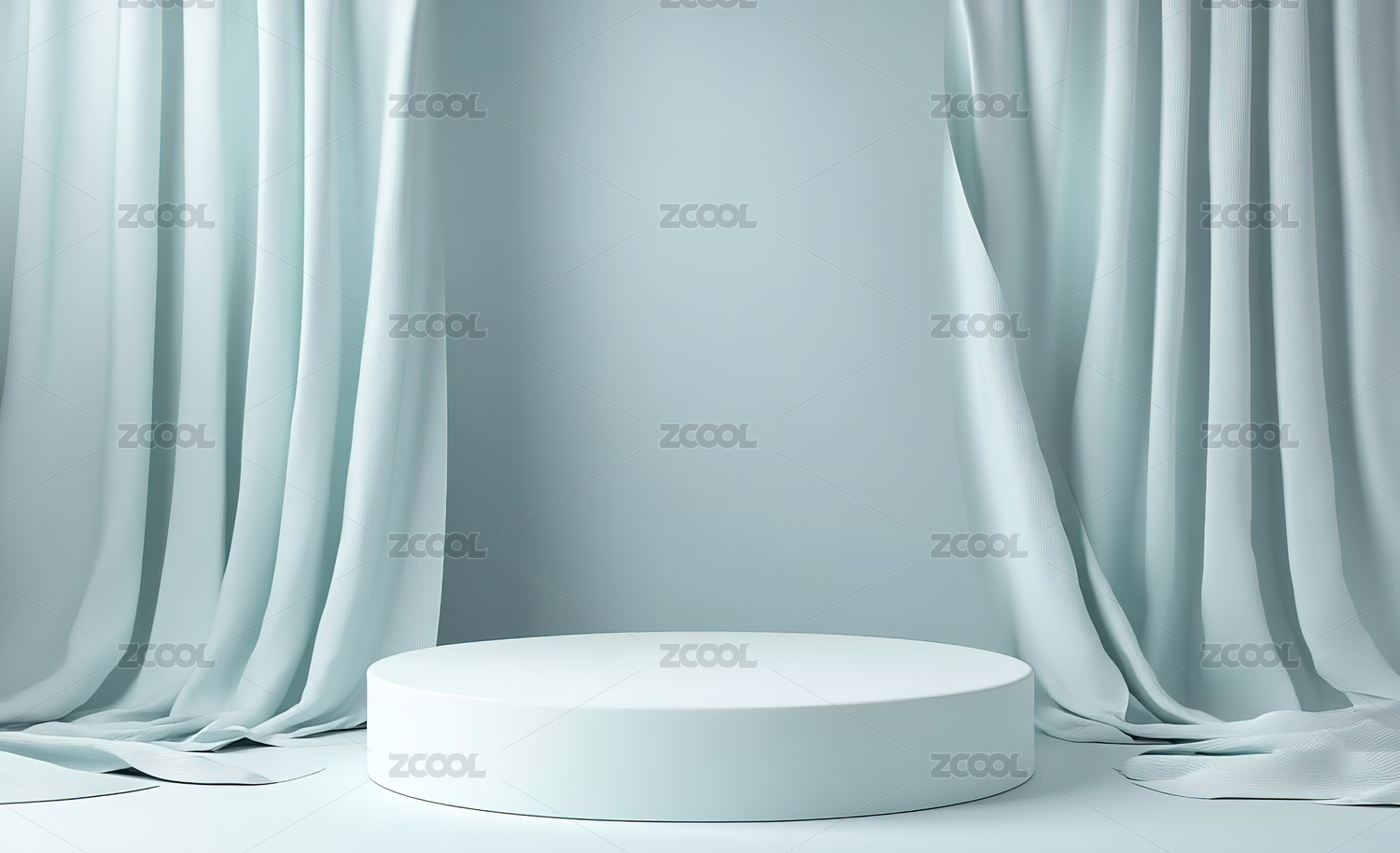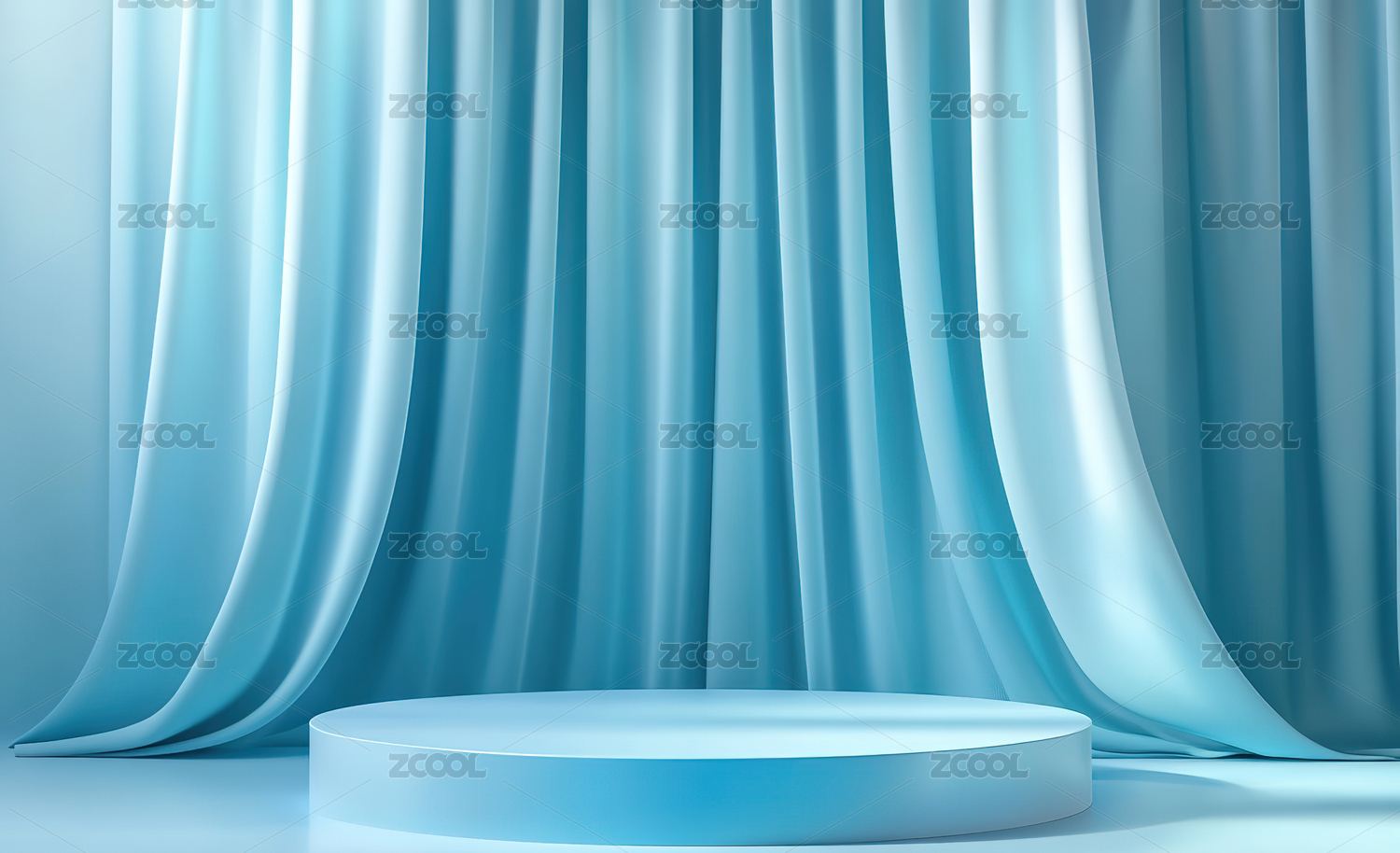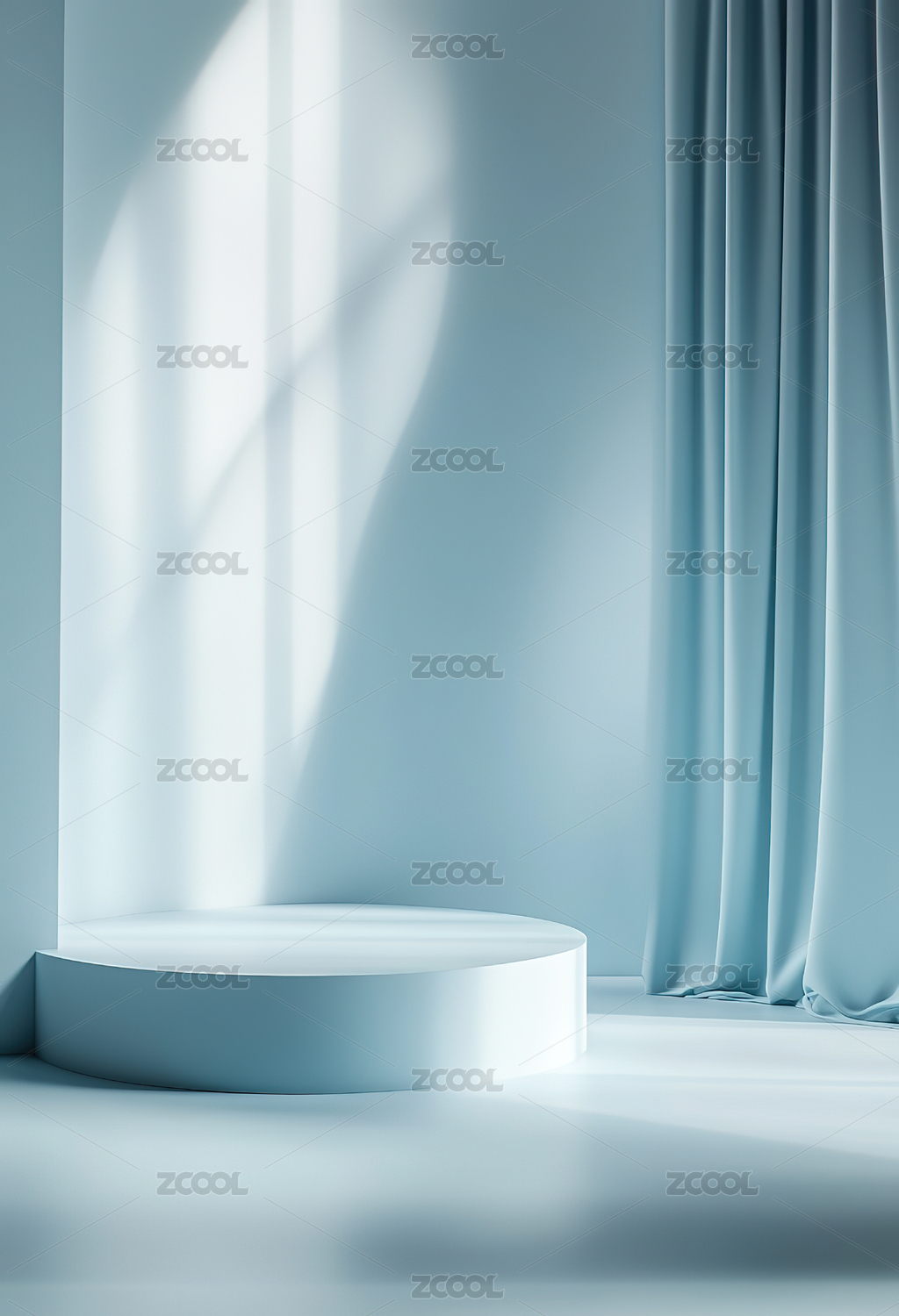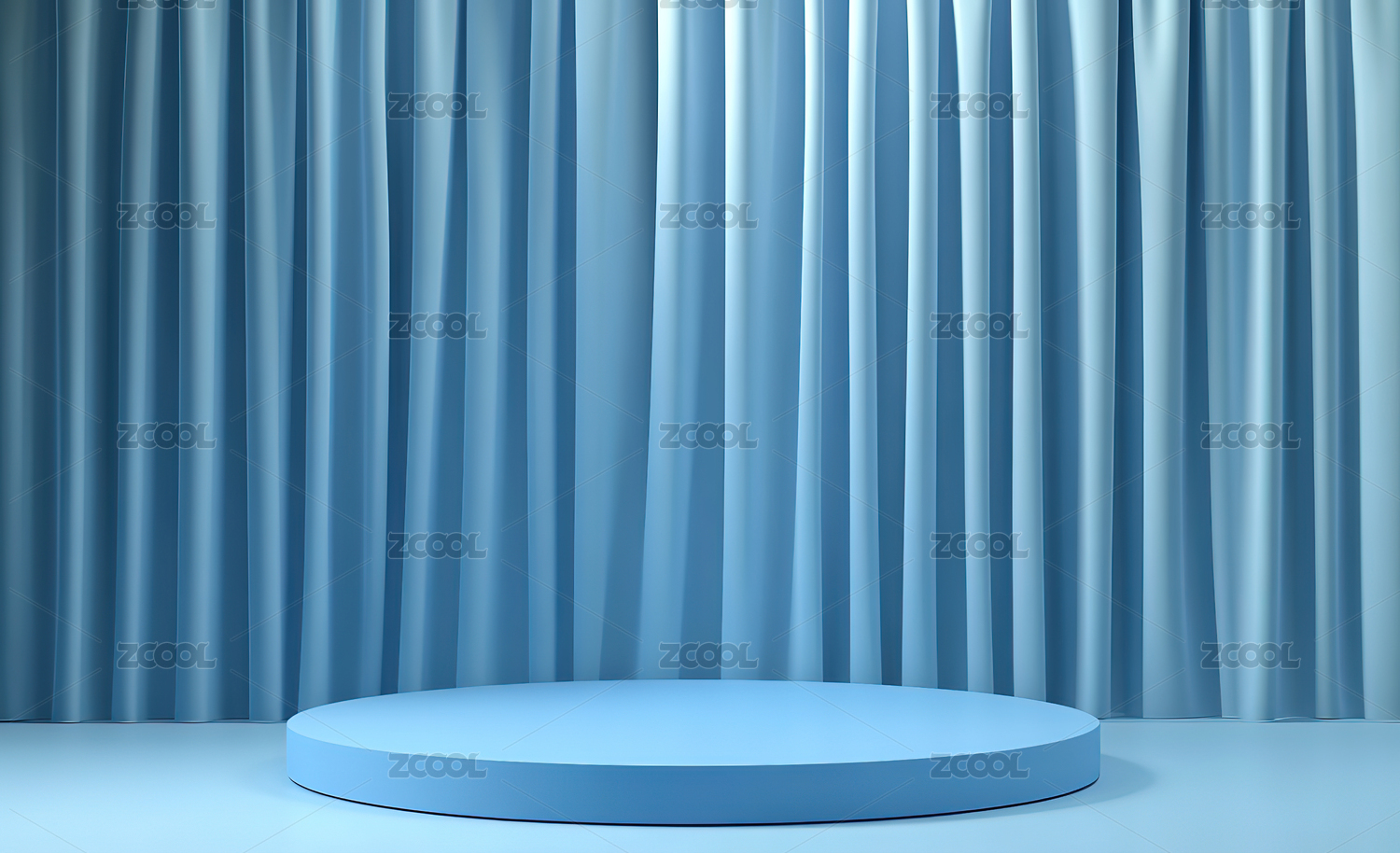 蓝色幕布前的白色圆形展台