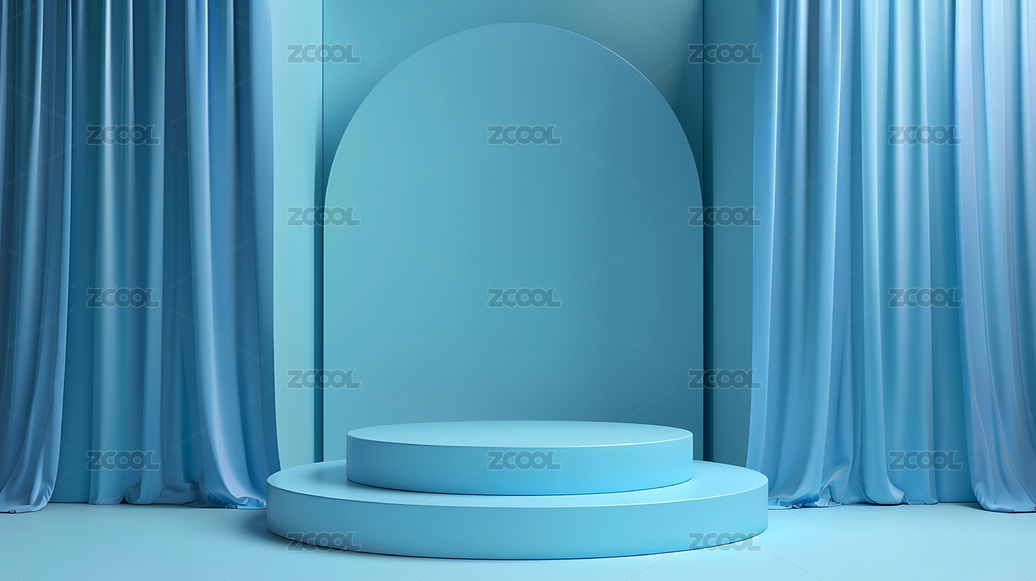 浅蓝幕布前的阶梯展台