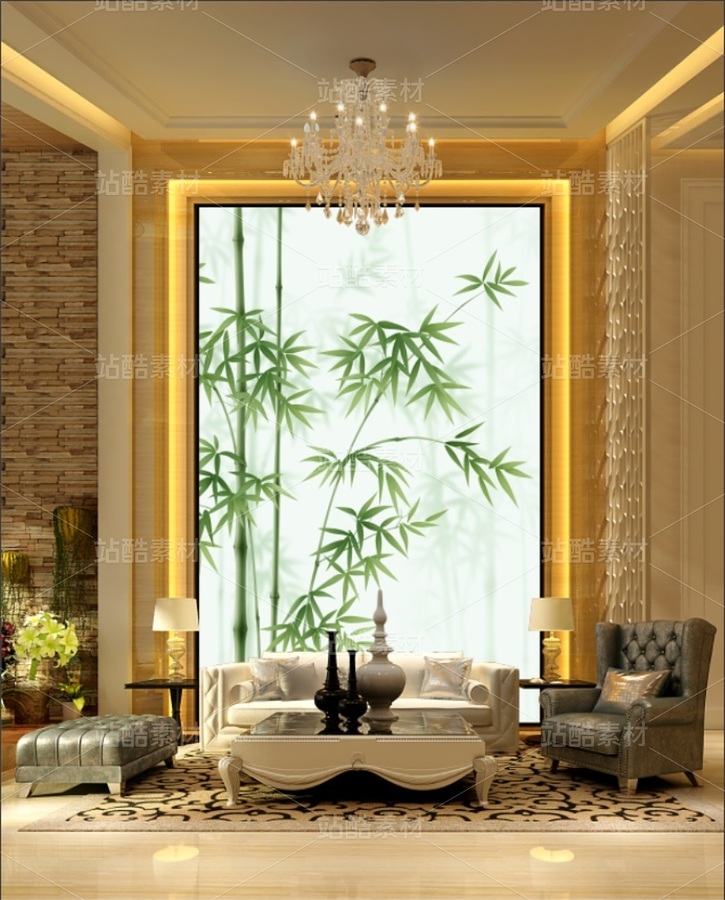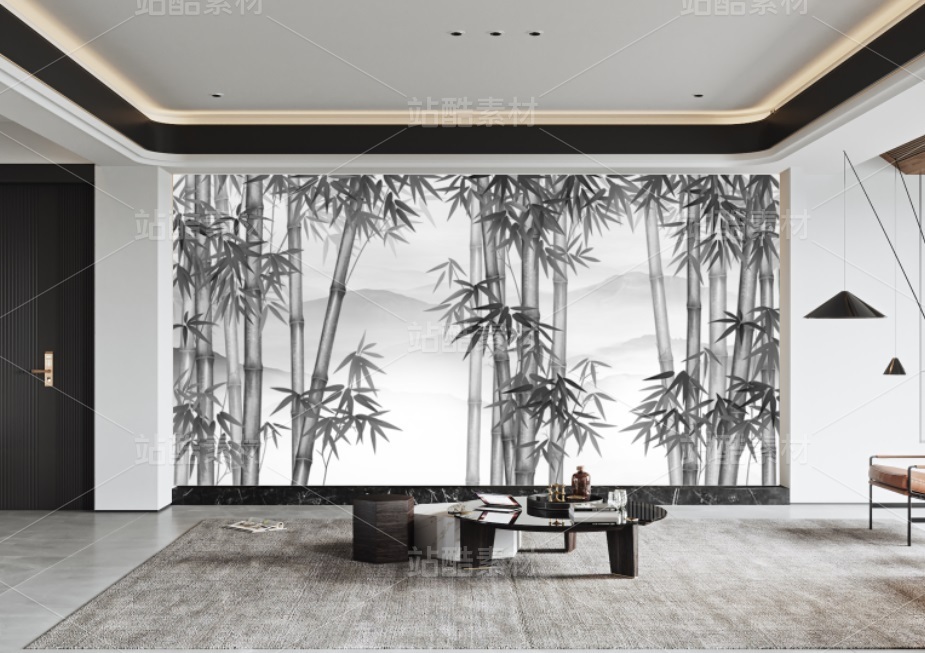 抽象竹鸟装饰画 新中式竹子画 朦胧竹子 适用于家装,酒店,文化场所等,用于做:背景墙、隔断、移门,屏风、玄关。高清分层图可以用UV打印。