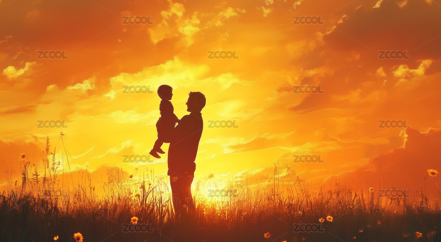 夕阳下的父子漫步主题