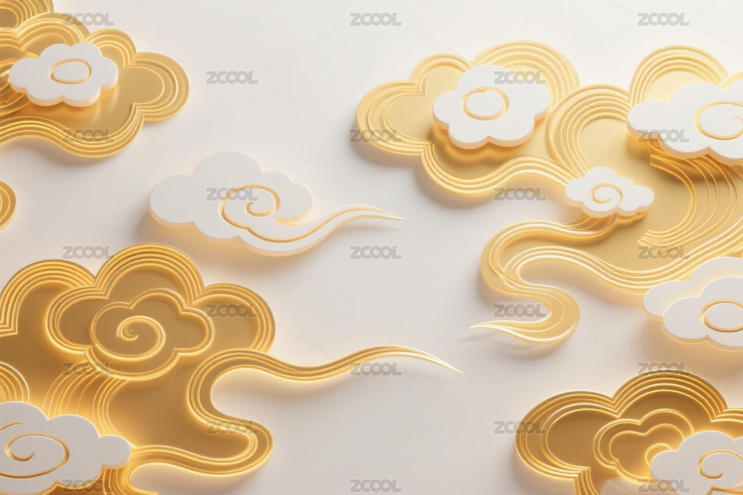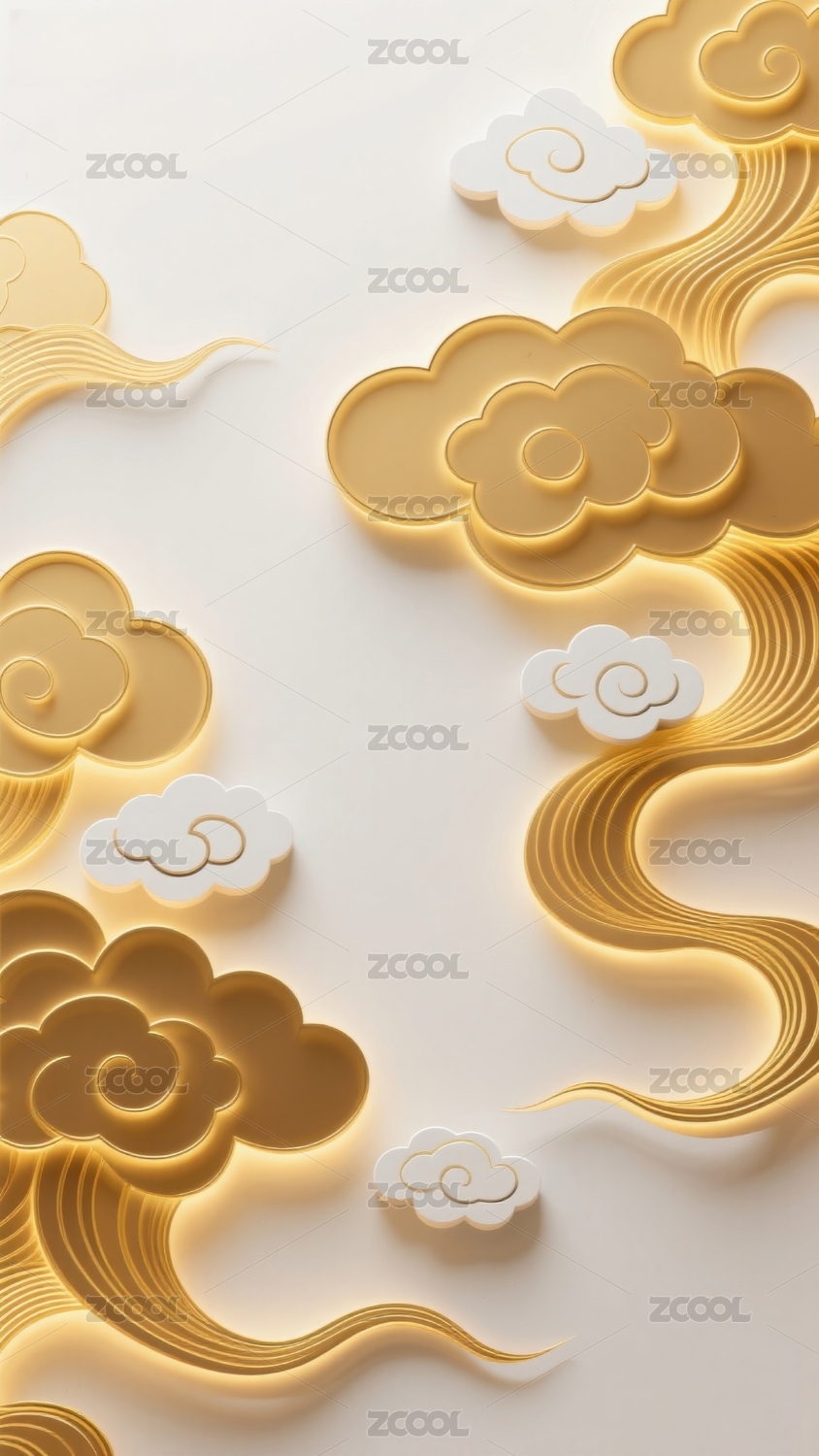 3D立体鎏金祥云背景